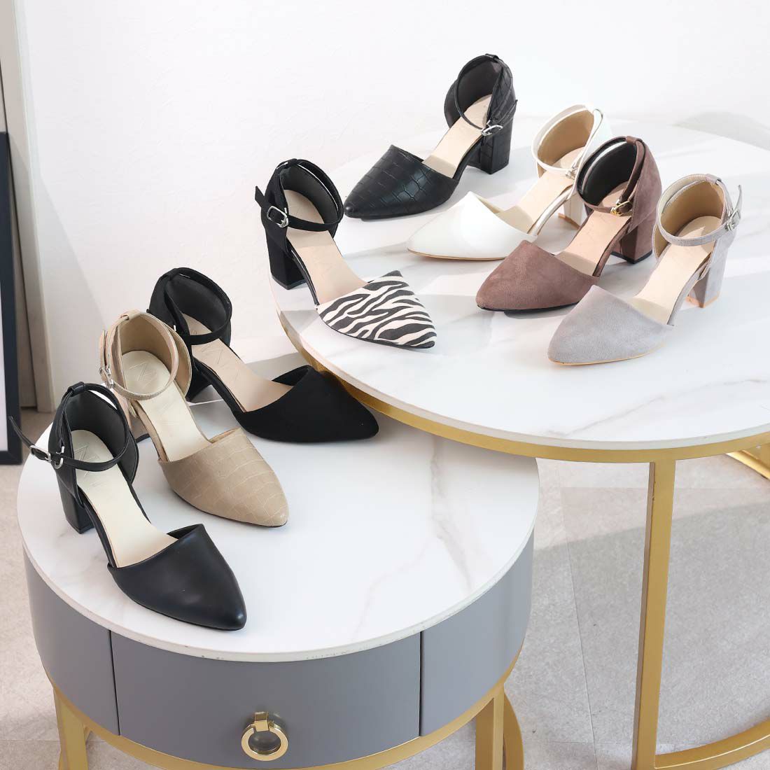 チャンキーヒールセパレートアンクルストラップパンプス