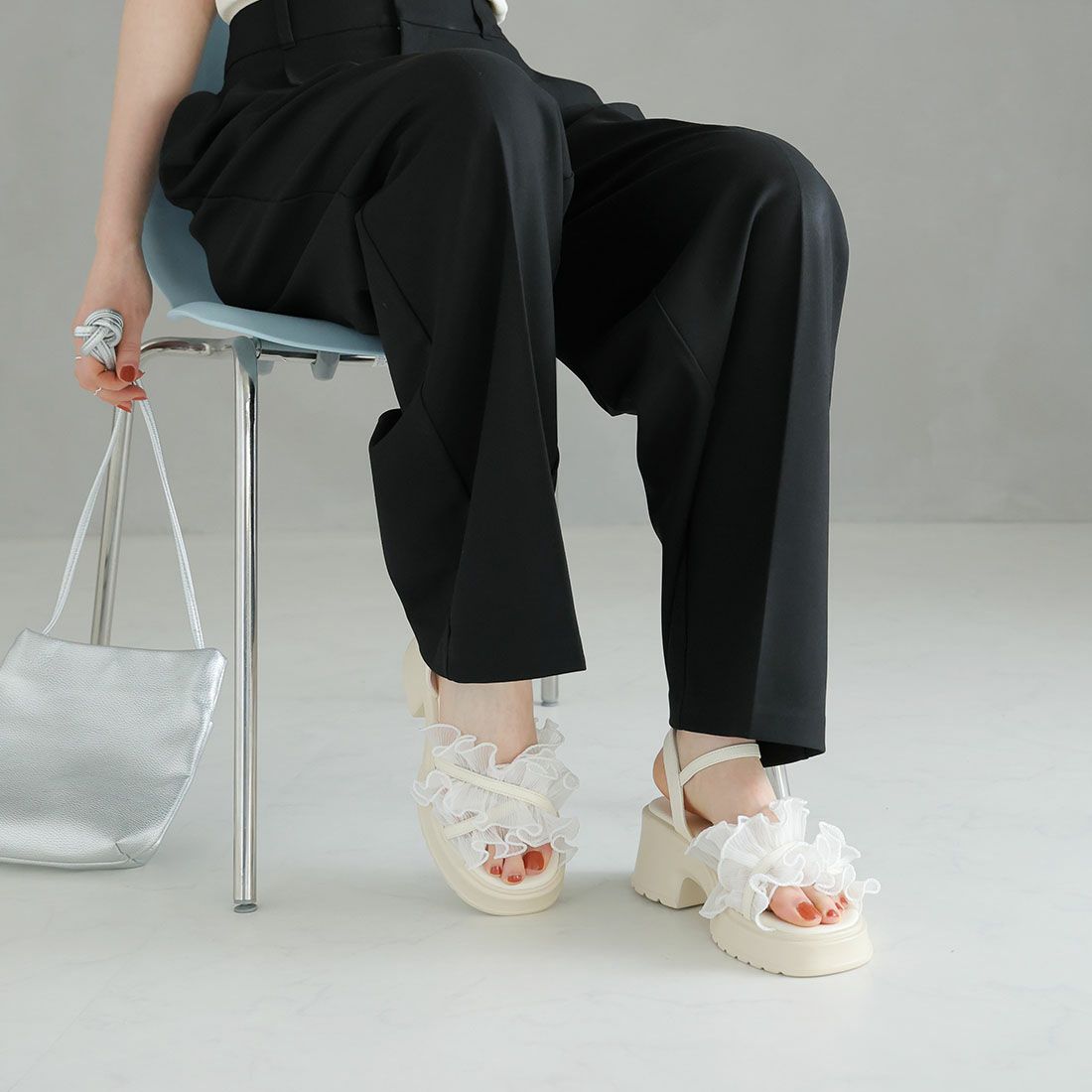 他の画像を見る VIVIAN 【2025新色追加】シアークロスフリル厚底ストラップサンダル 即納 定価 ¥ 3,980 → 10%OFF ¥ 3,580 税込 SOLD OUT カートに入れる お気に入りに登録する