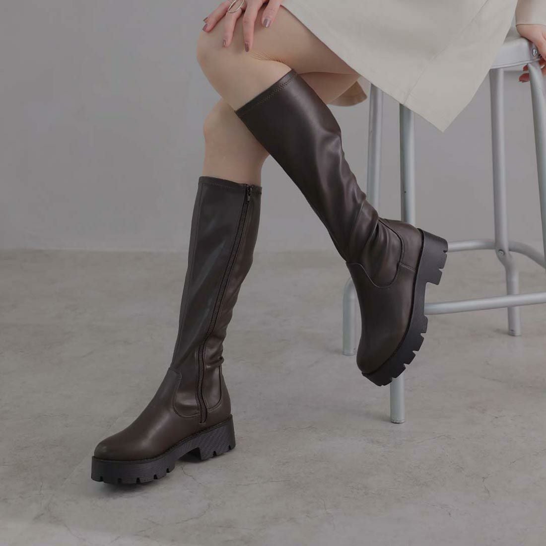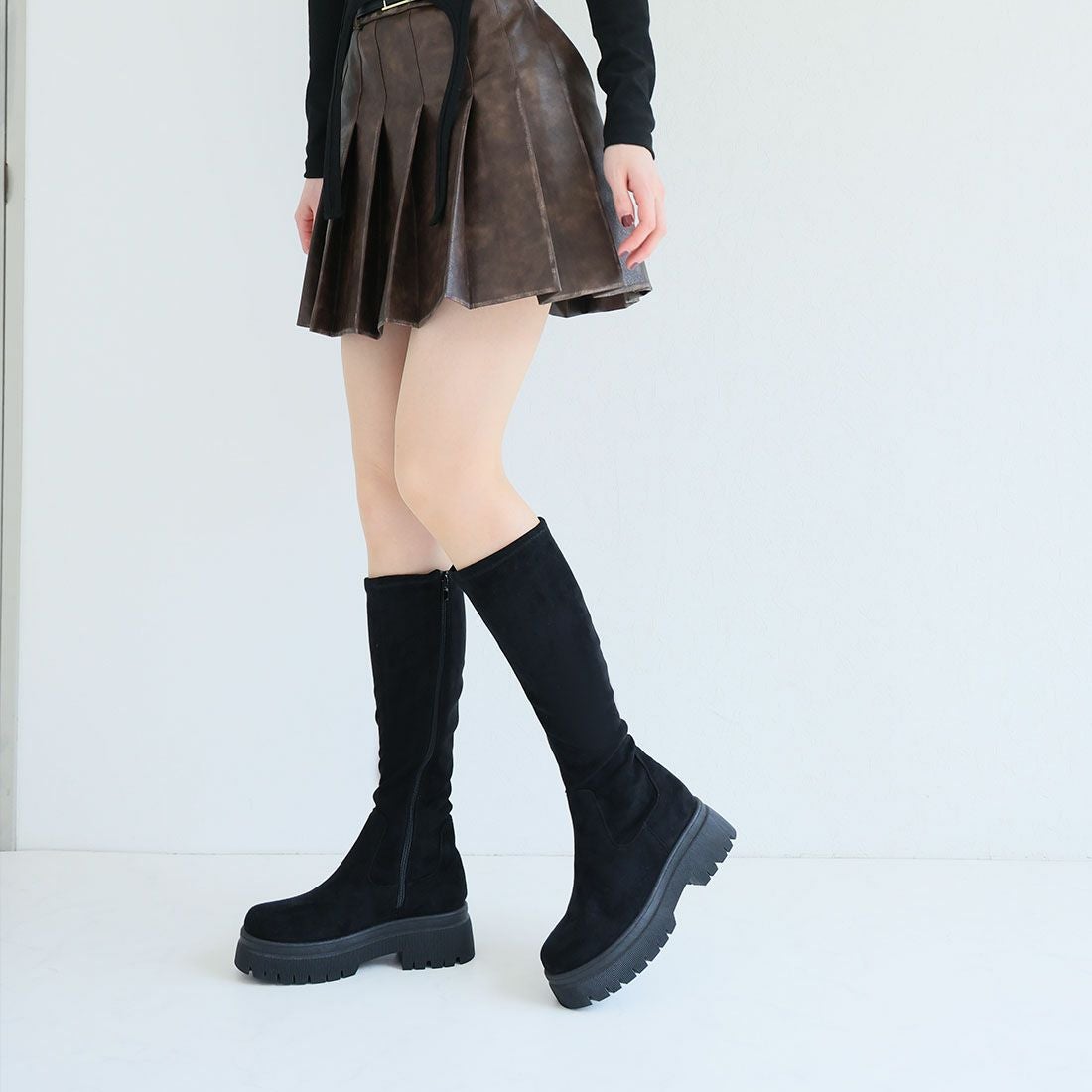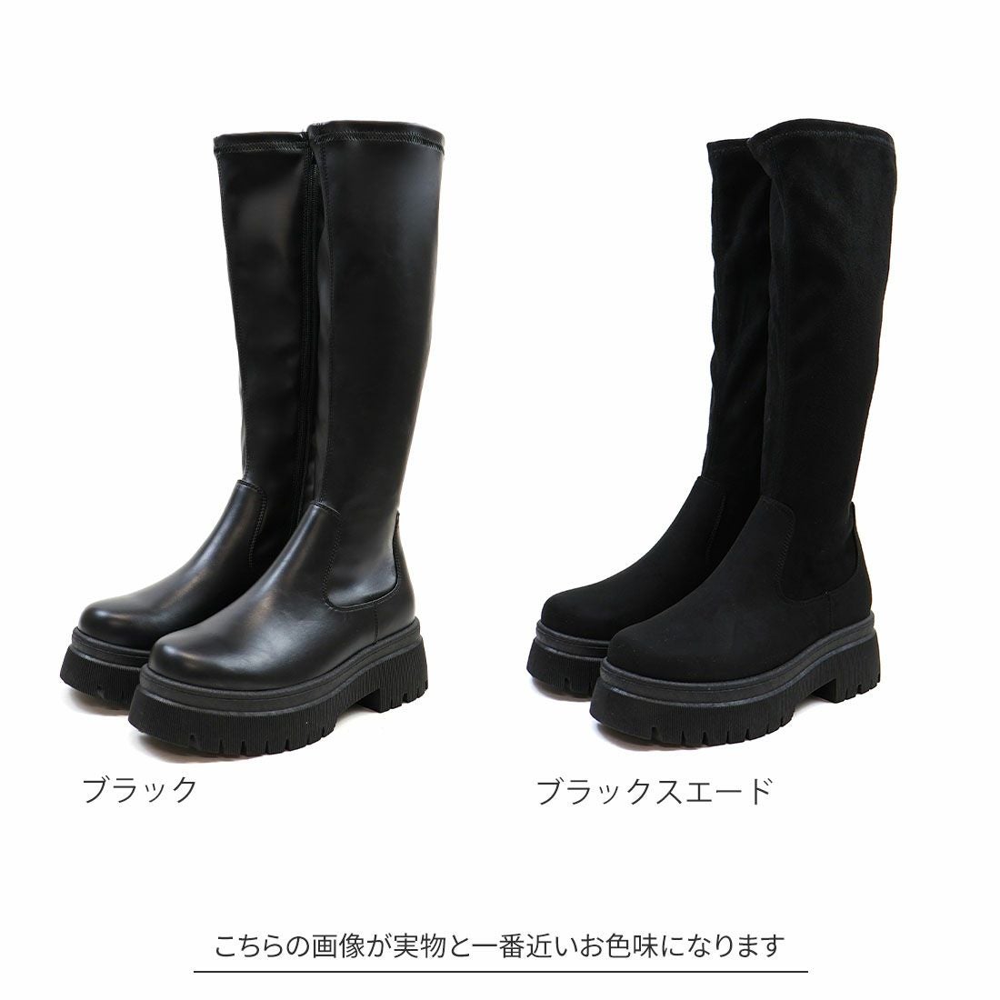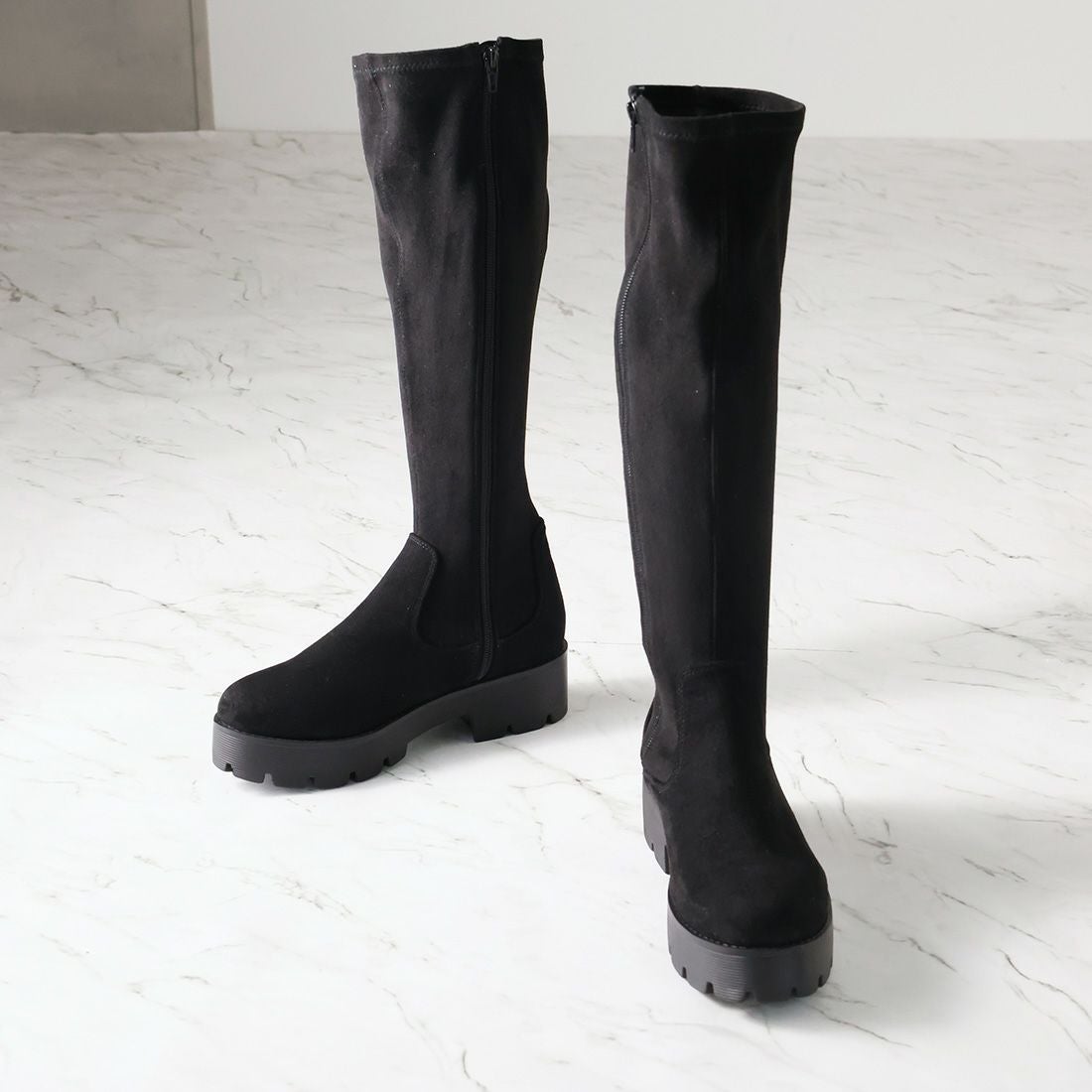 厚底ストレッチロングブーツ