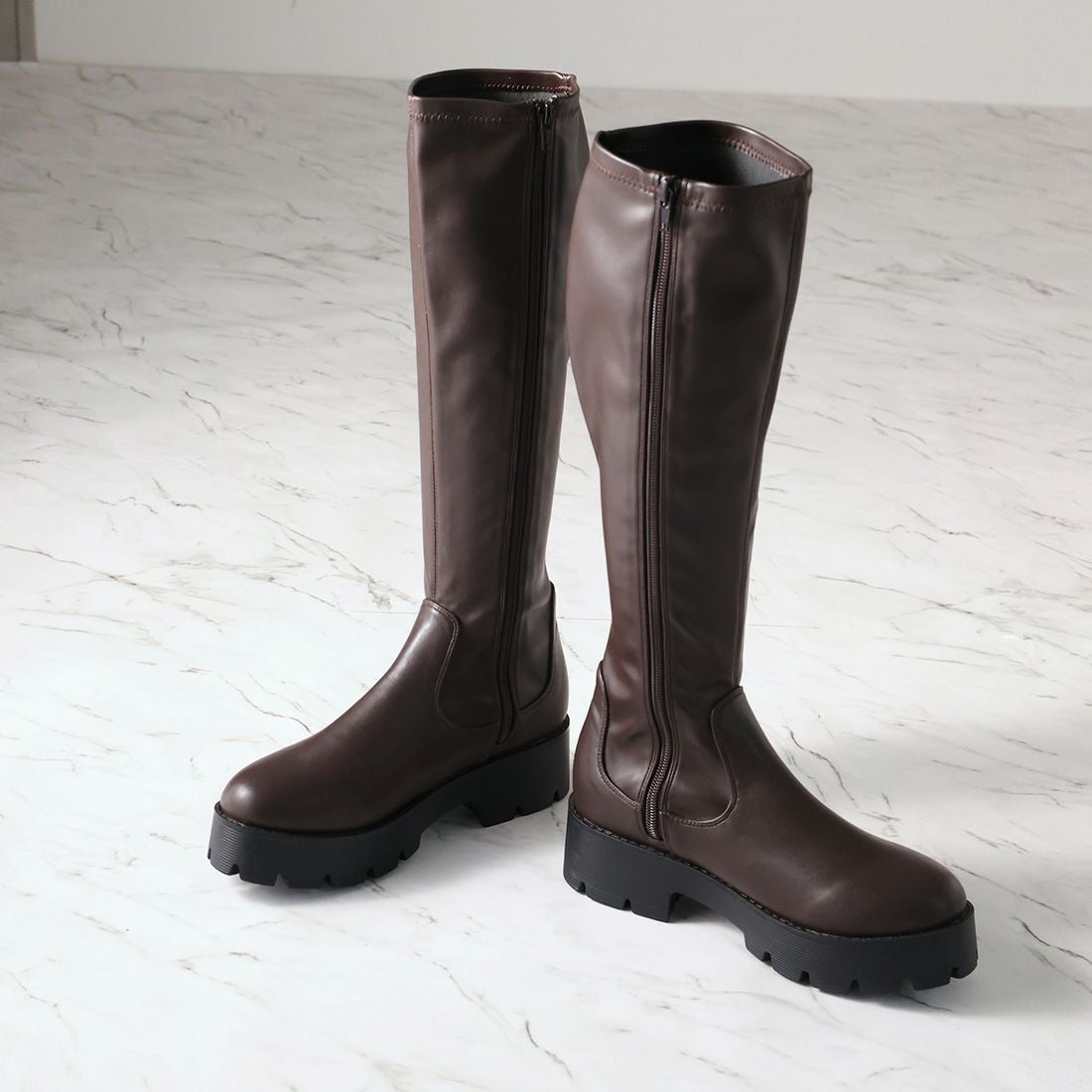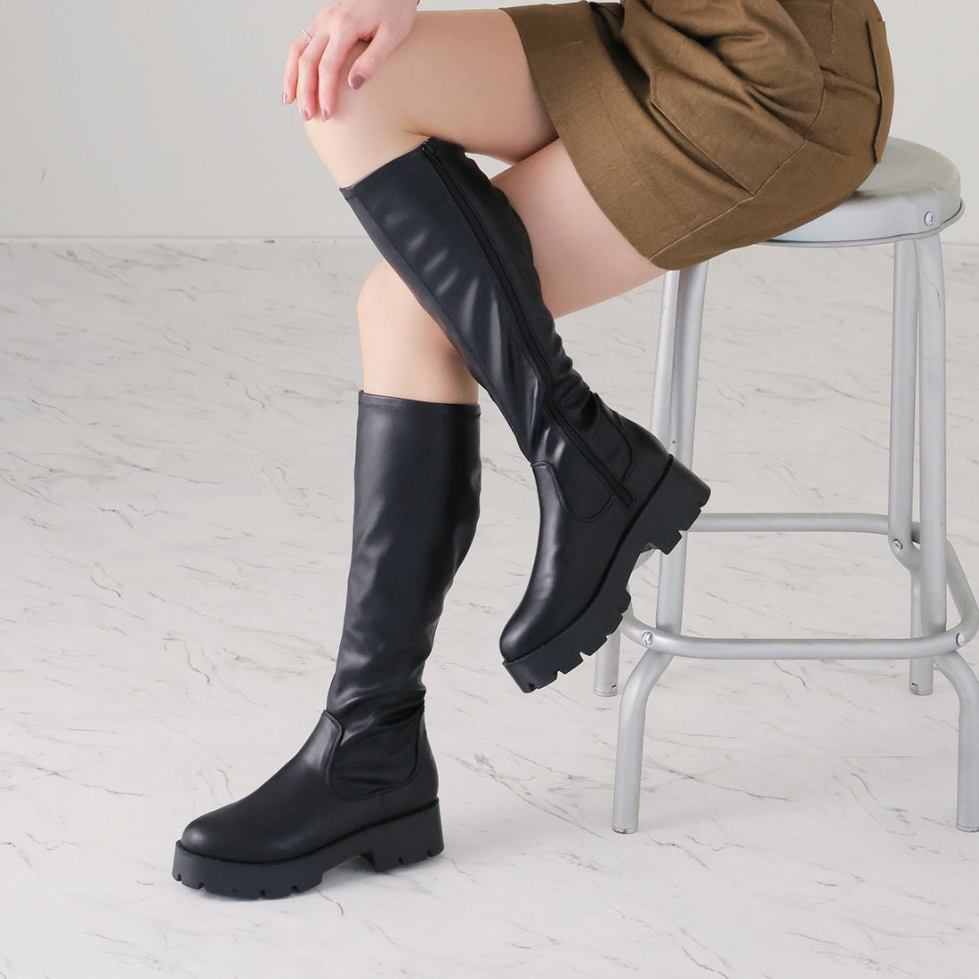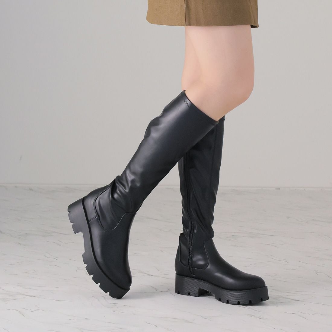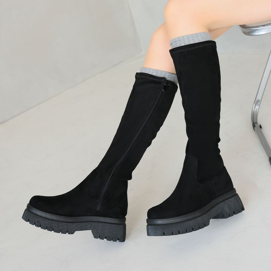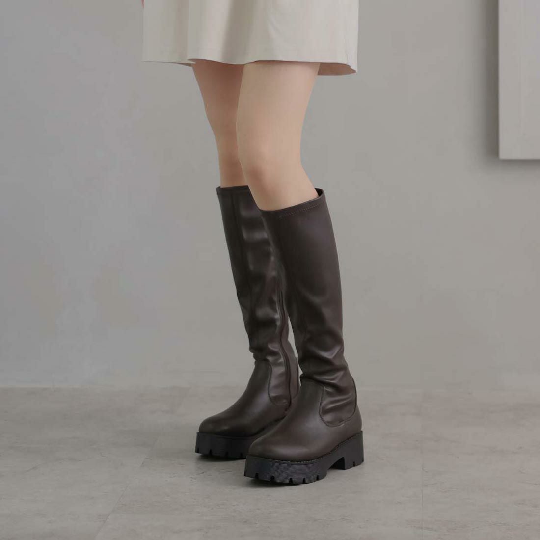 厚底ストレッチロングブーツ