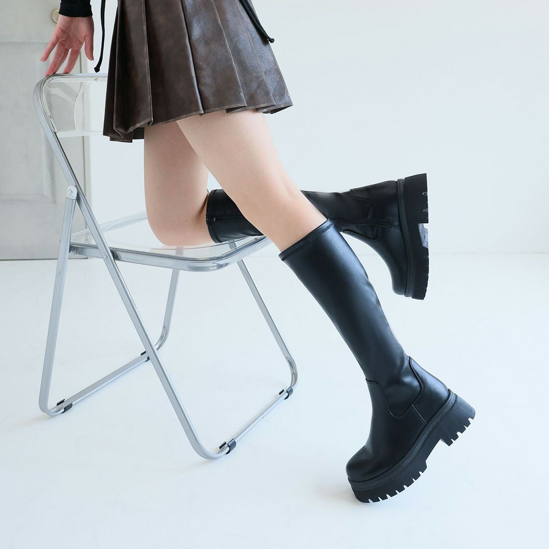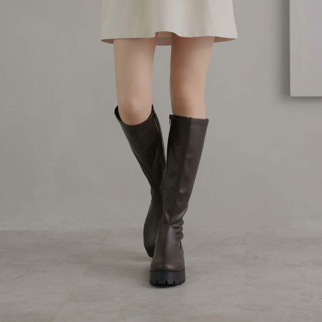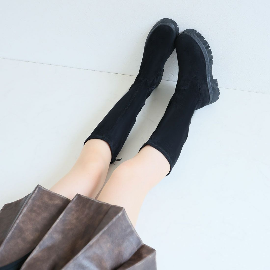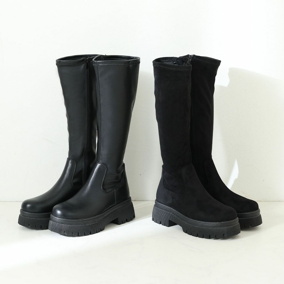 厚底ストレッチロングブーツ