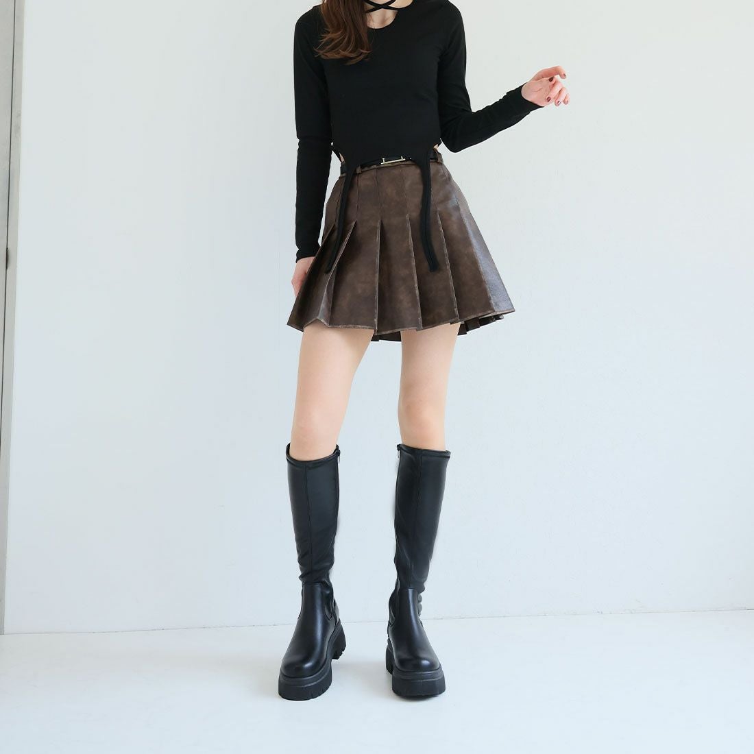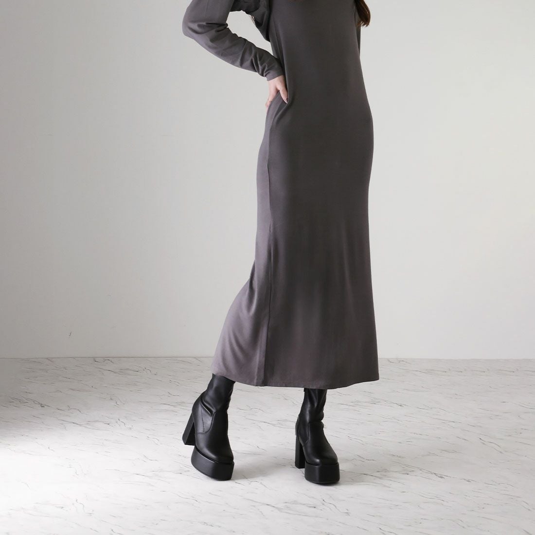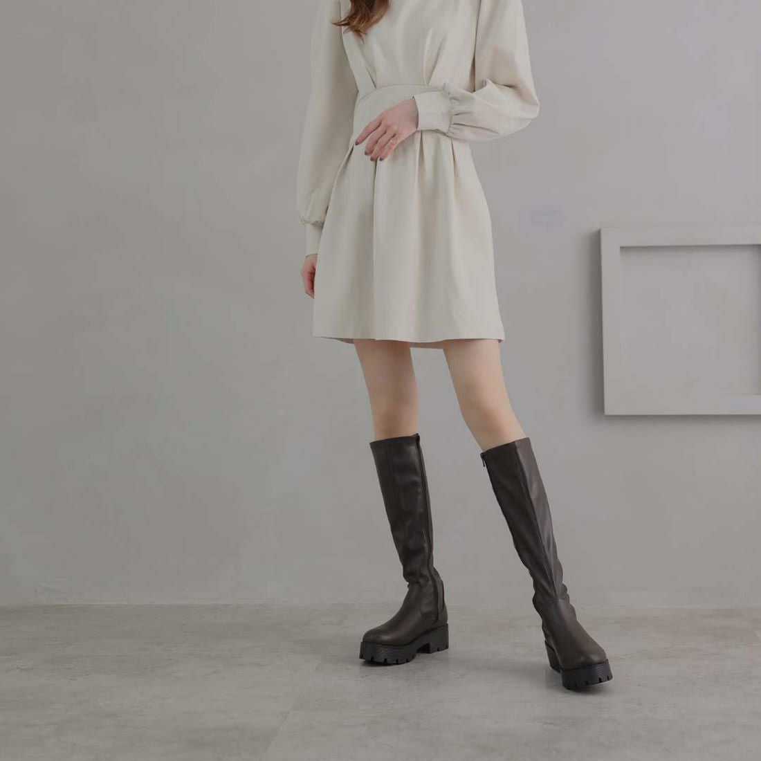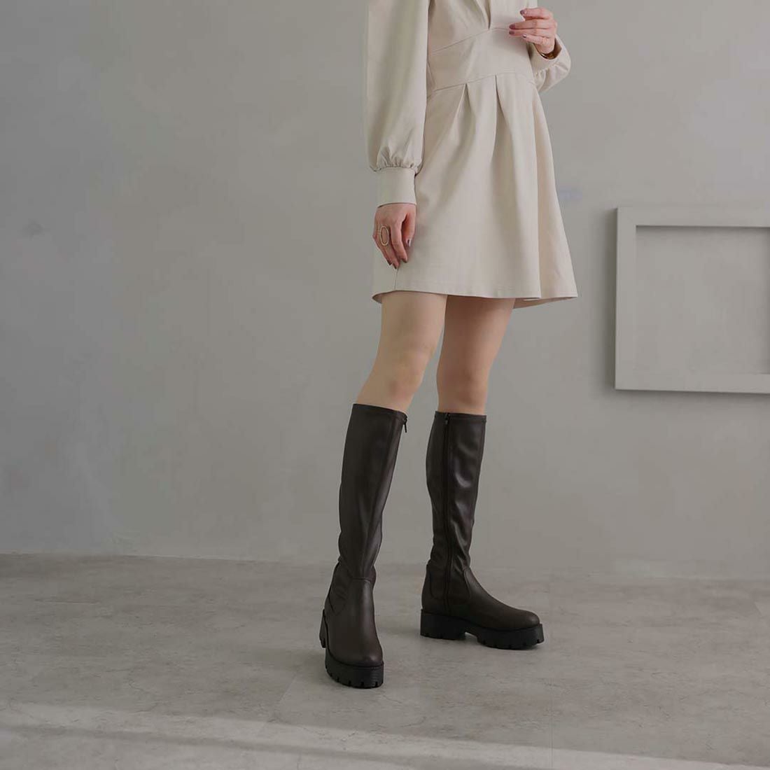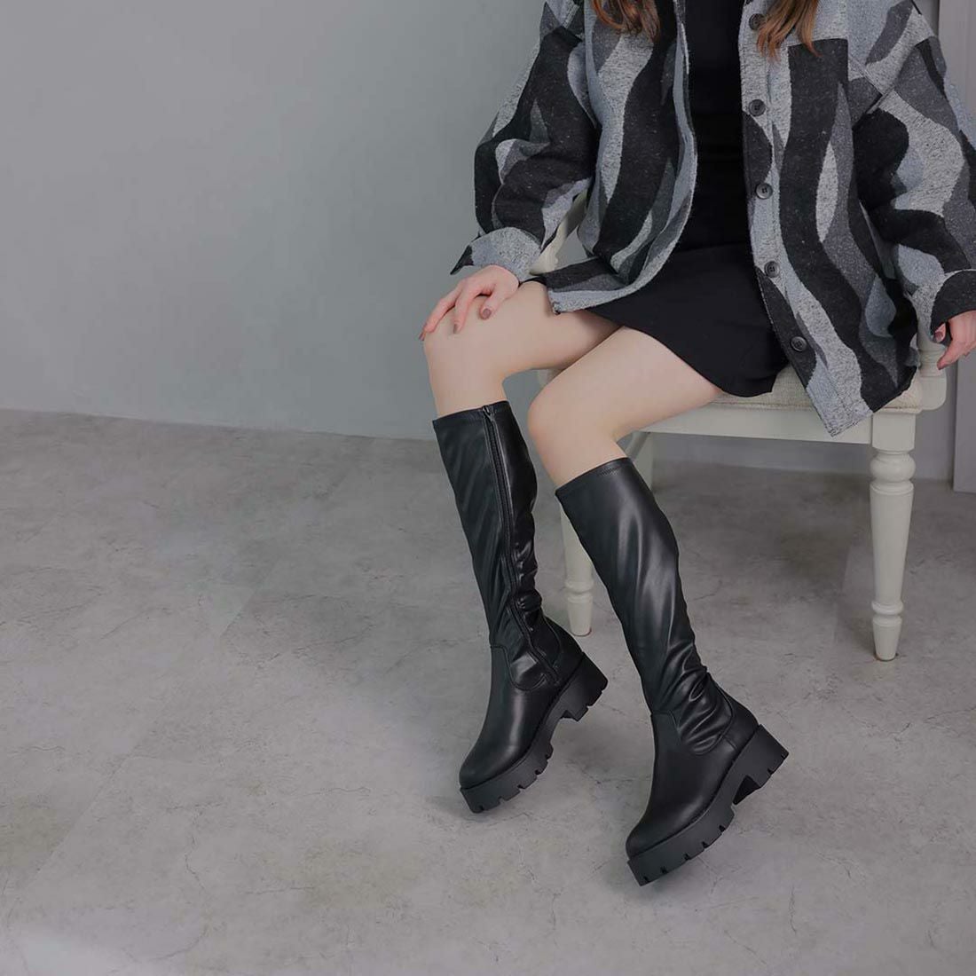 厚底ストレッチロングブーツ