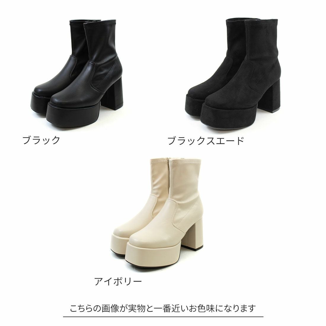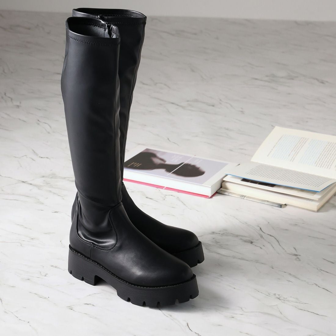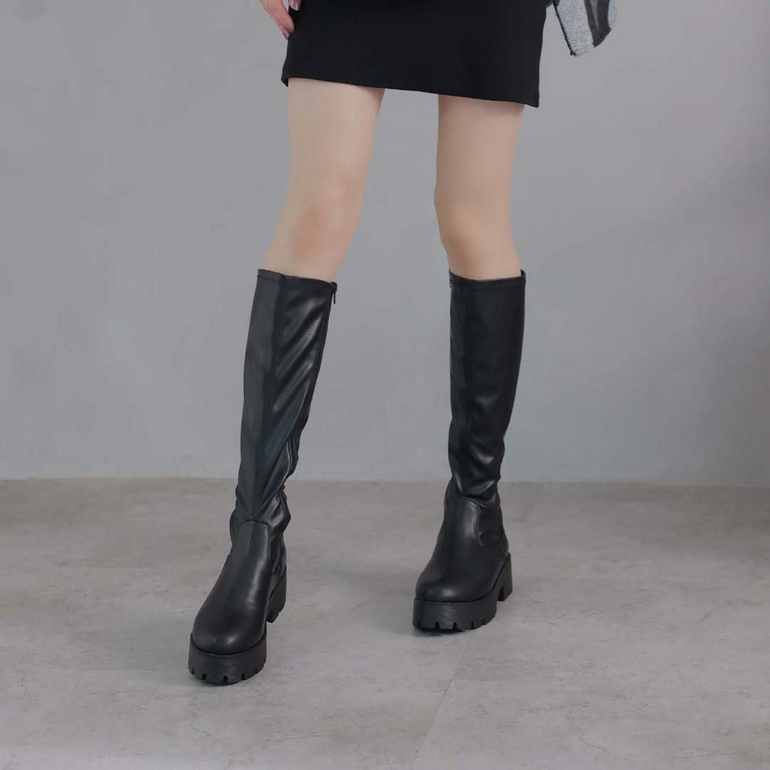 厚底プラットフォームストレッチブーツ