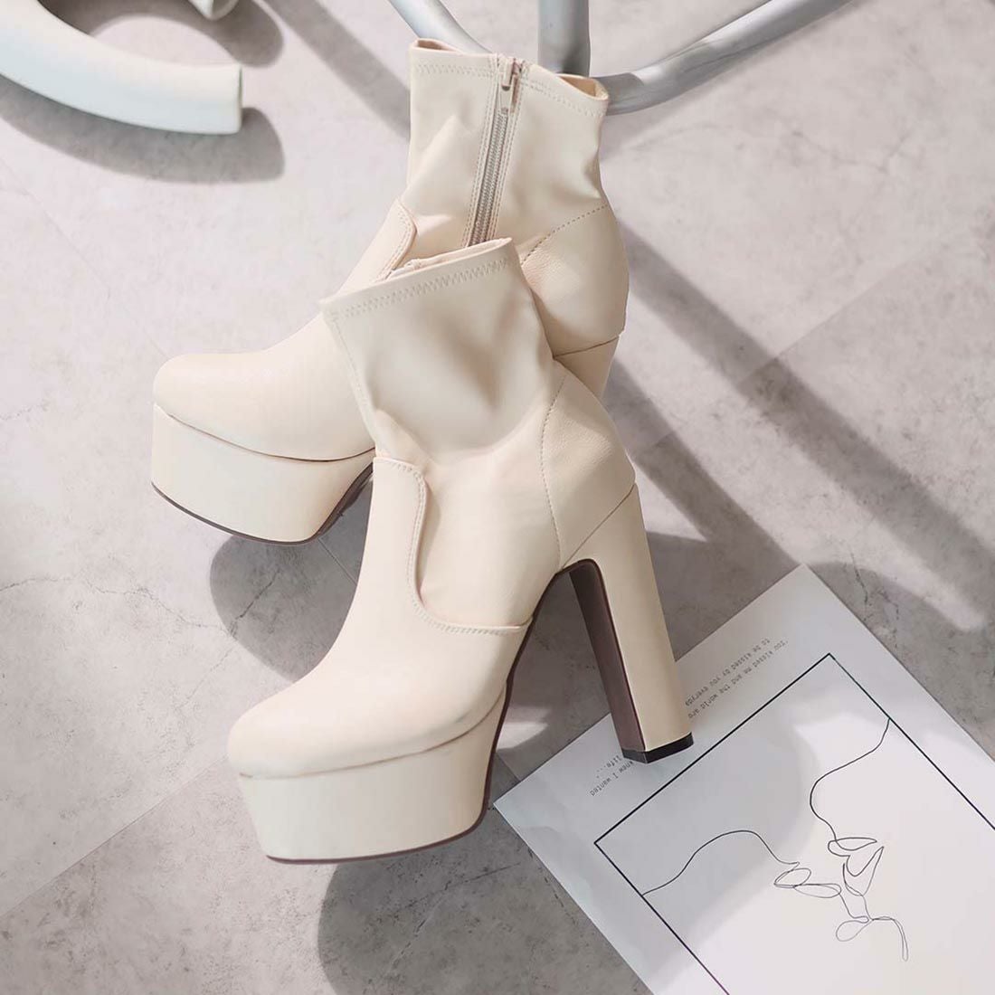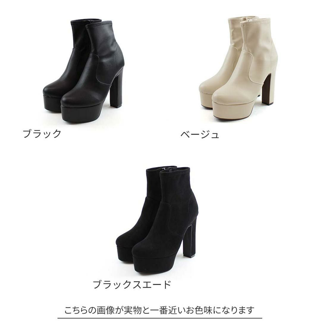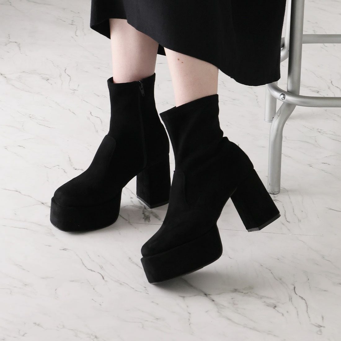 厚底プラットフォームストレッチブーツ