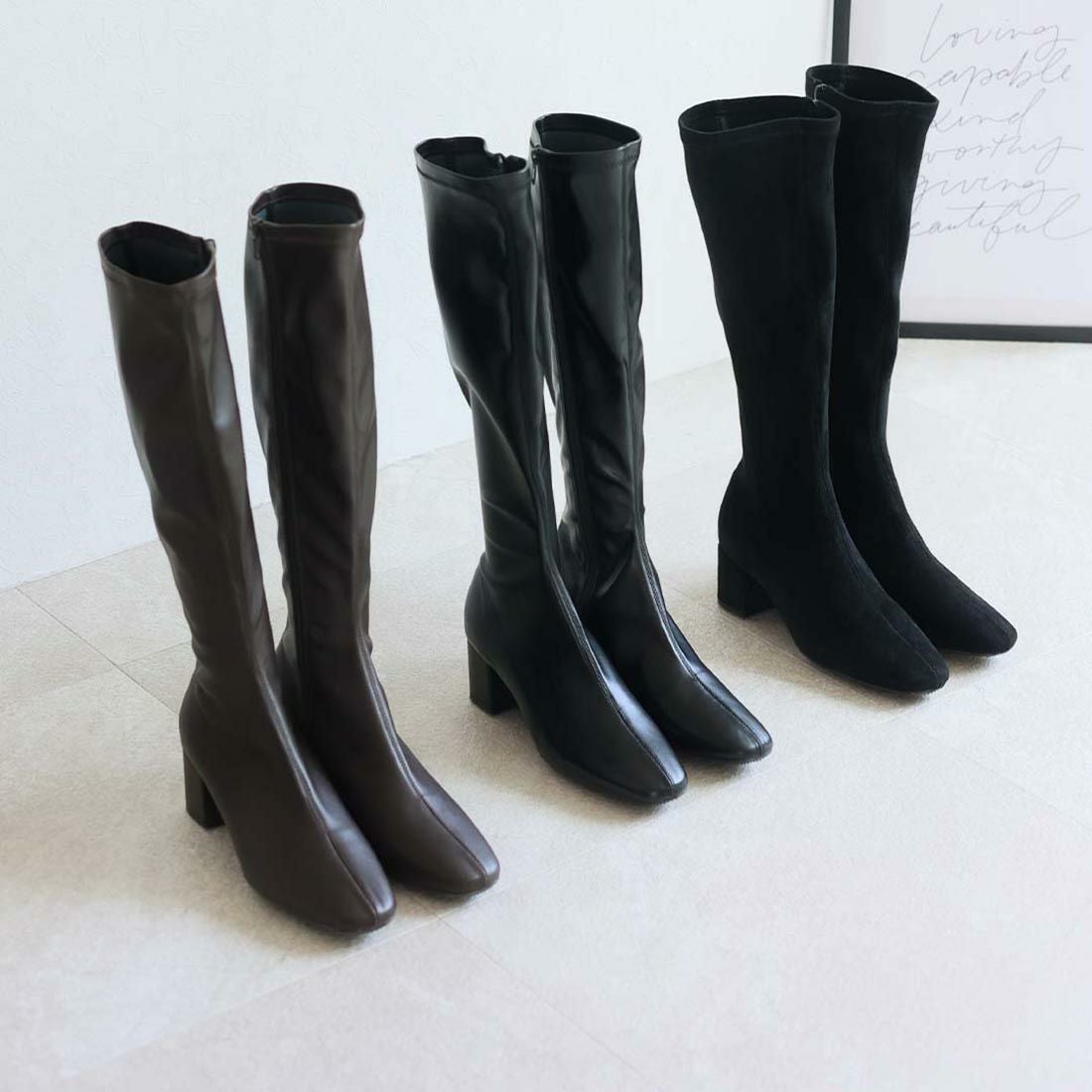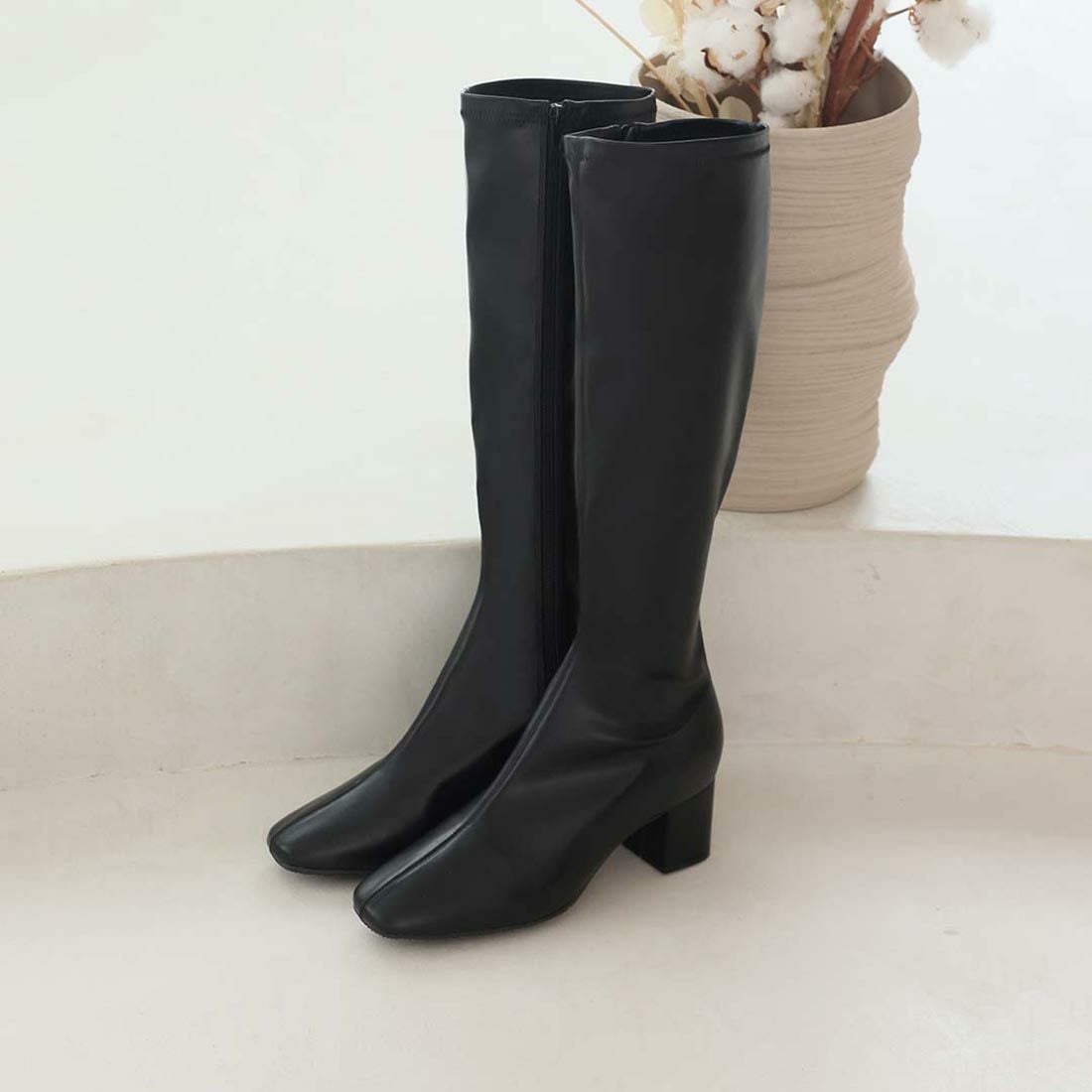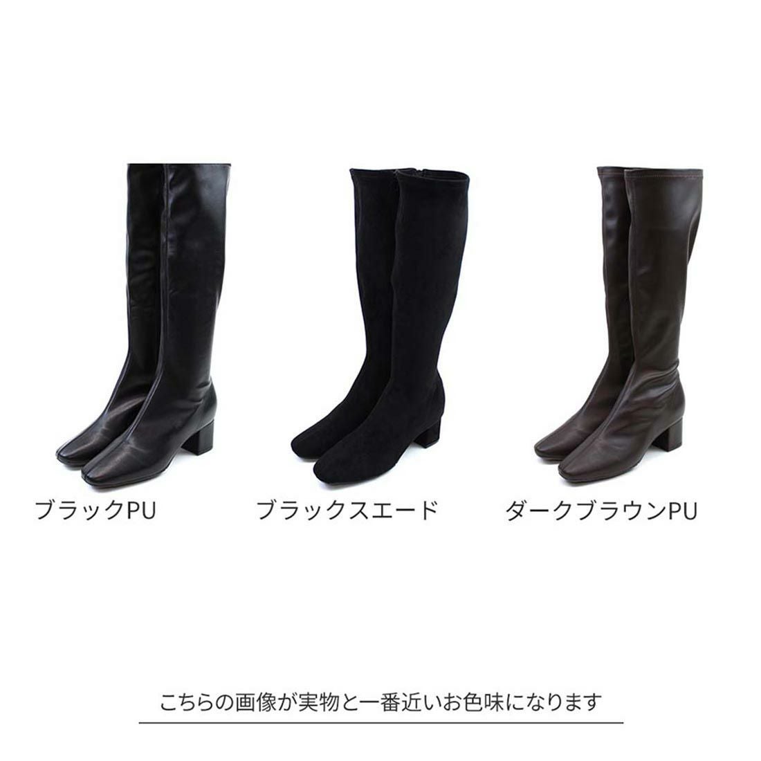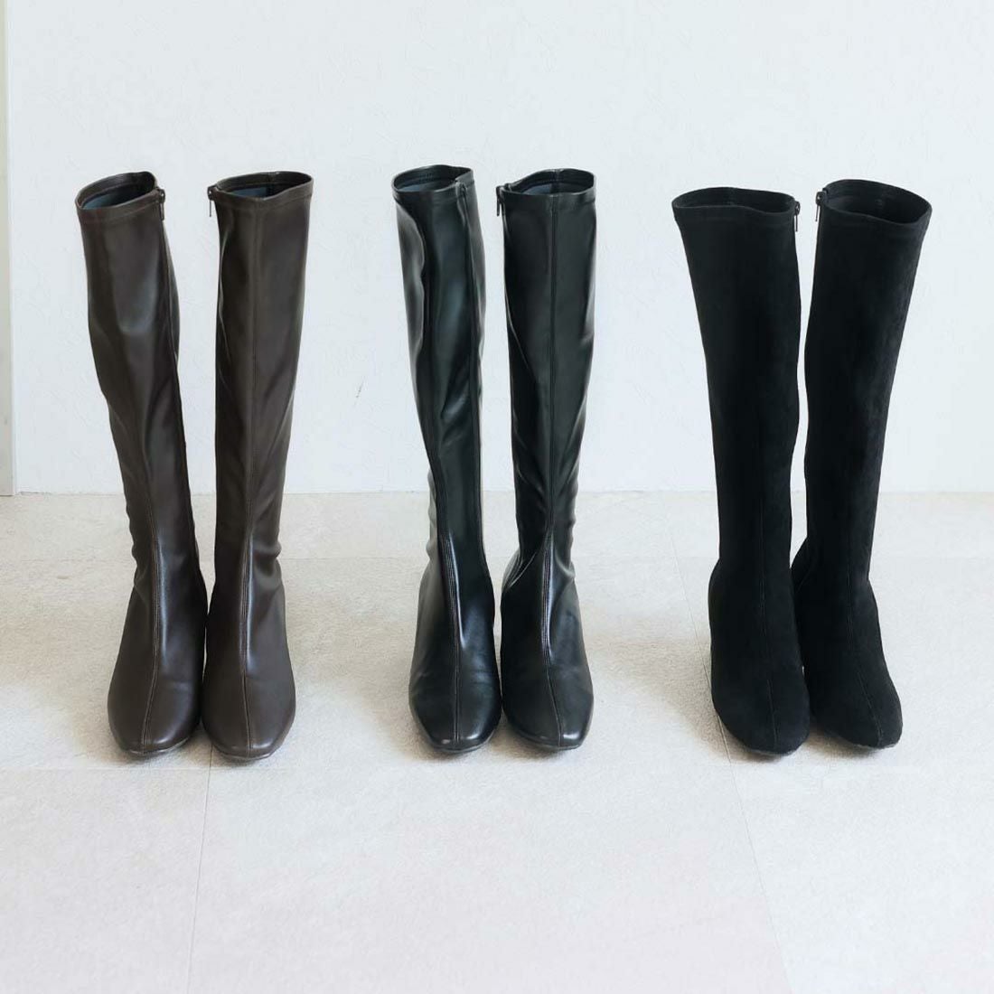 スクエアトゥストレッチロングブーツ