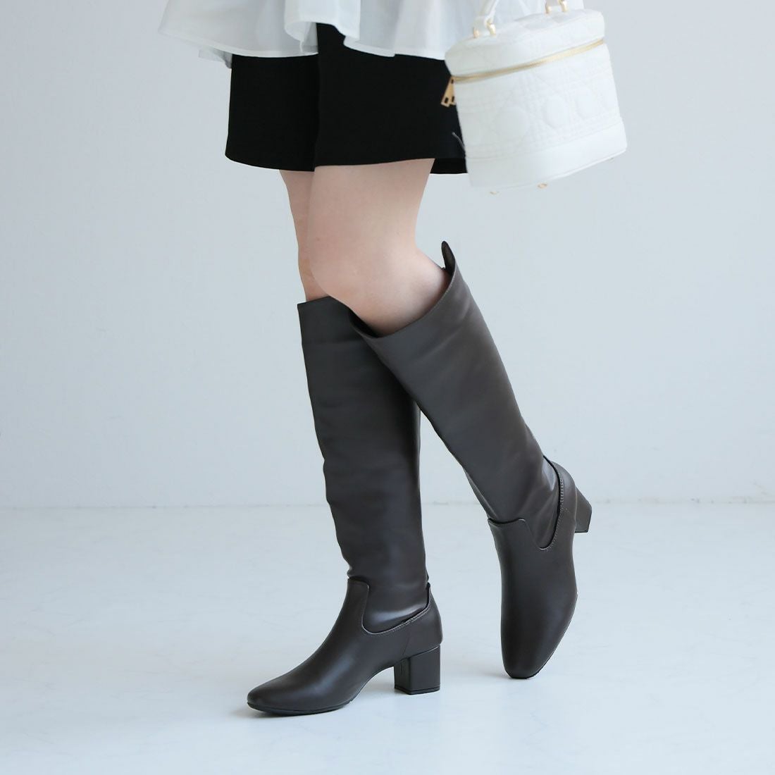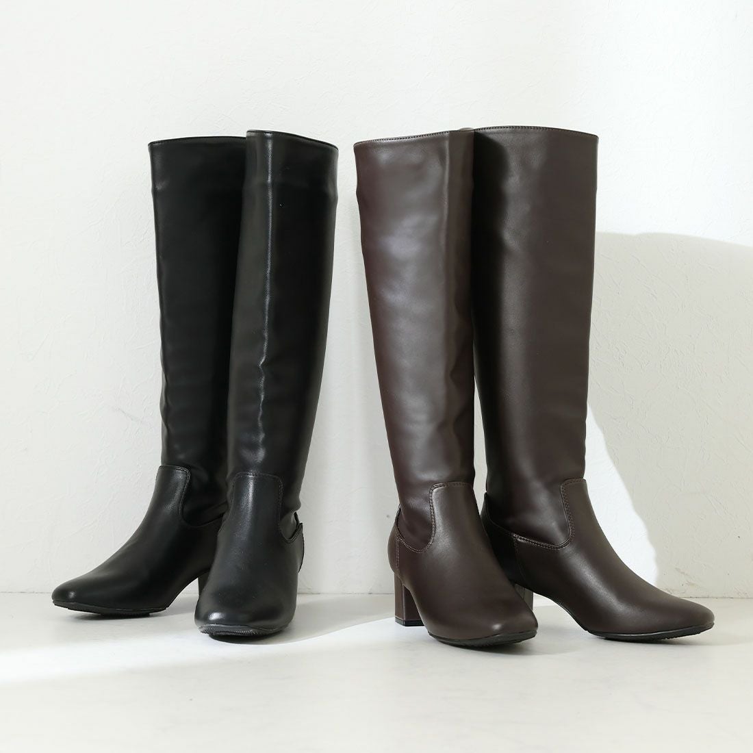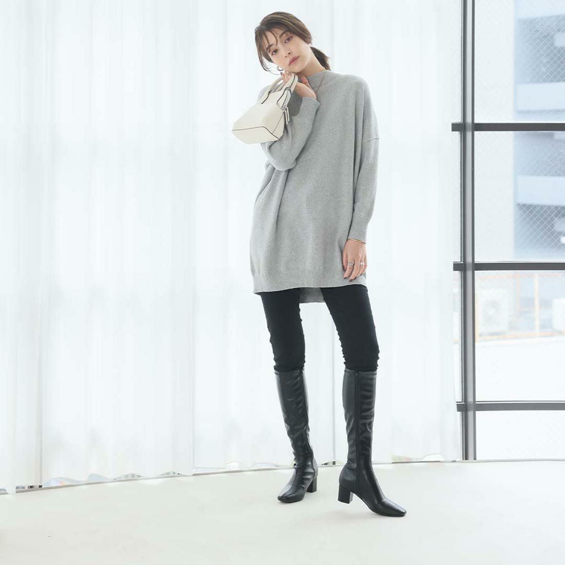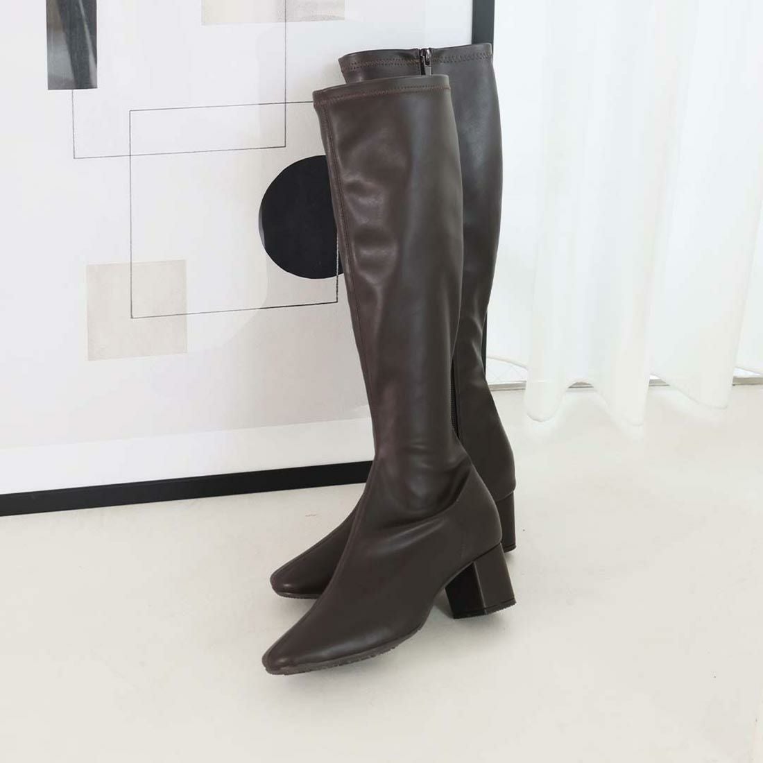 スクエアトゥストレッチロングブーツ