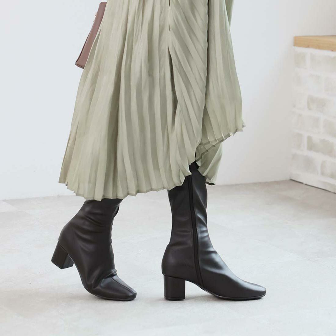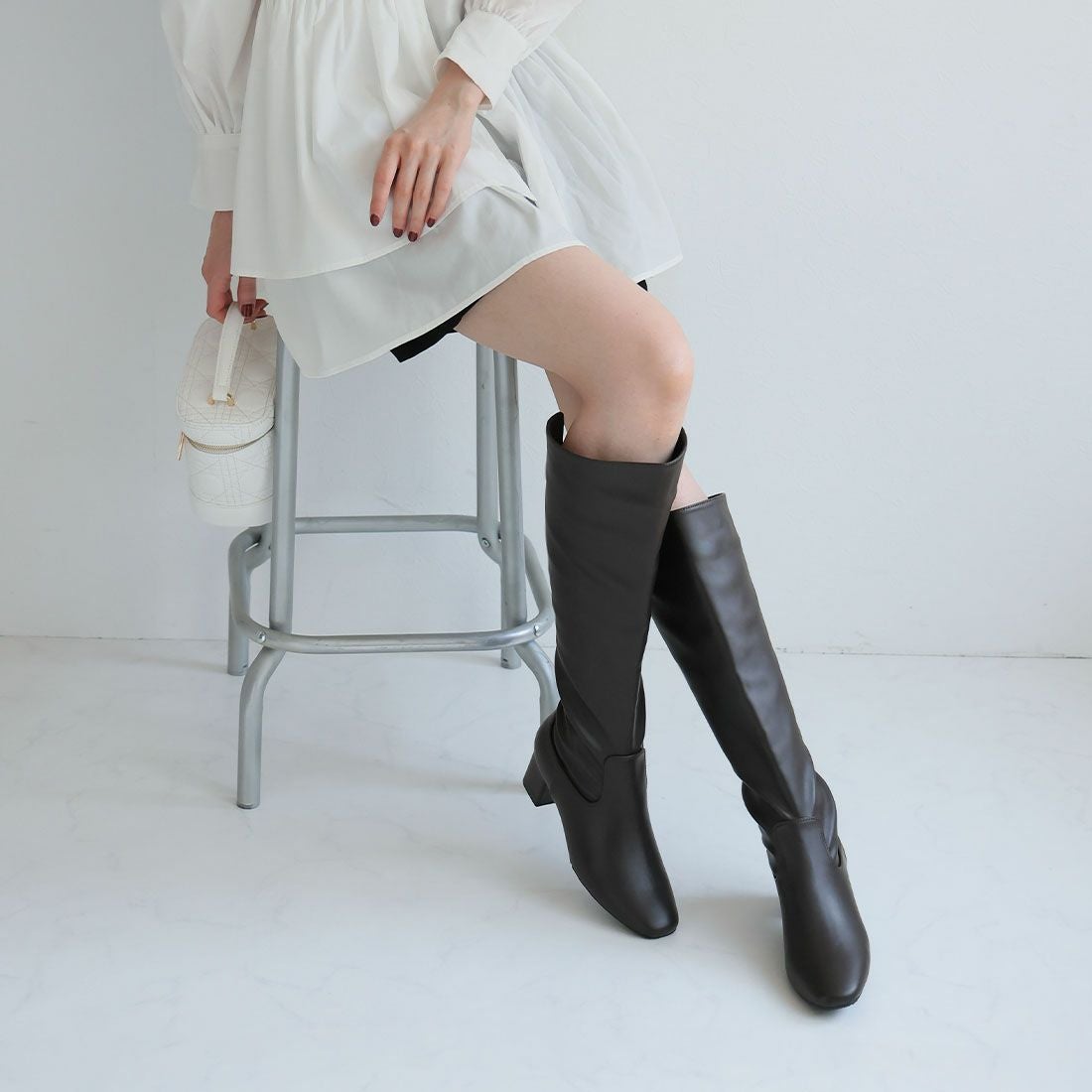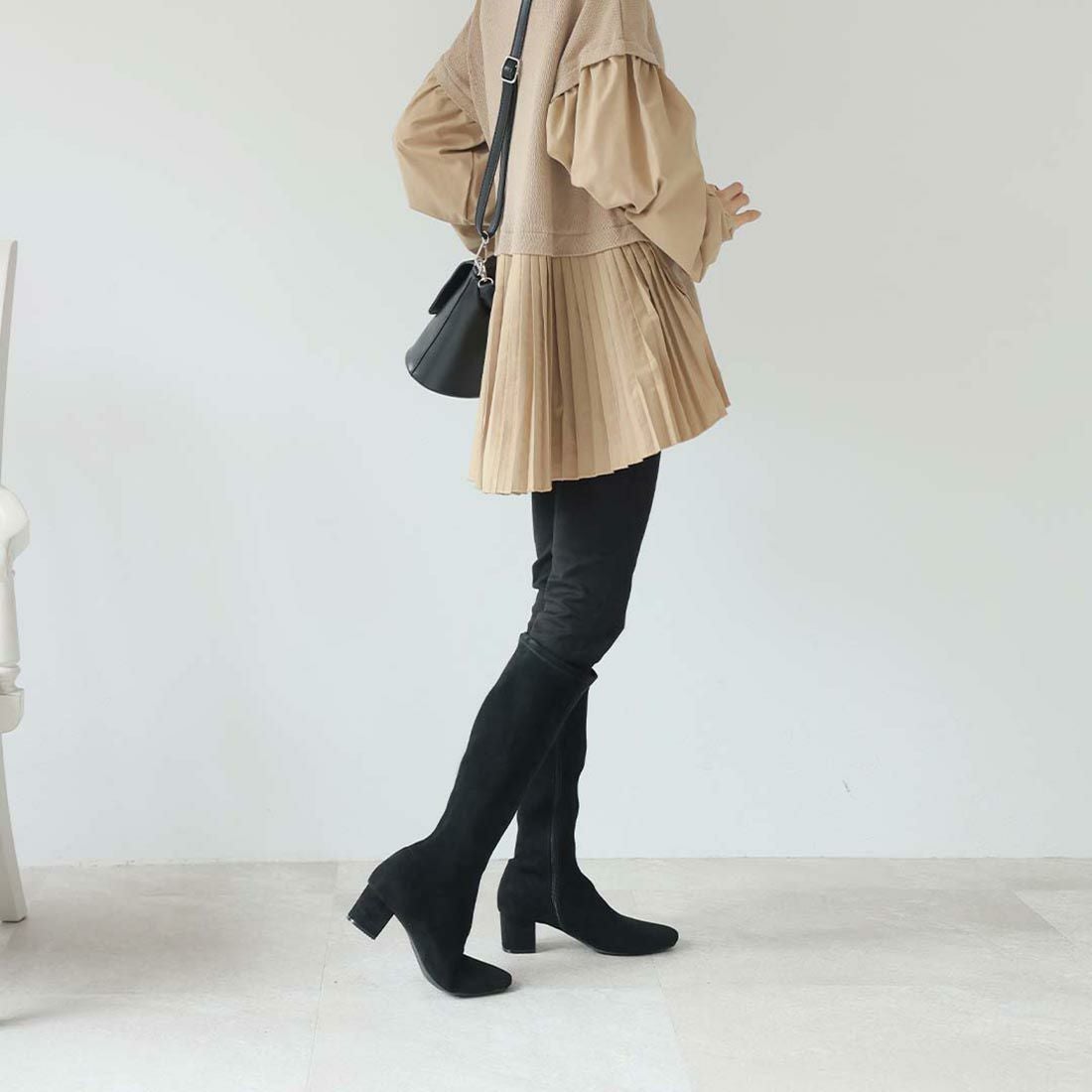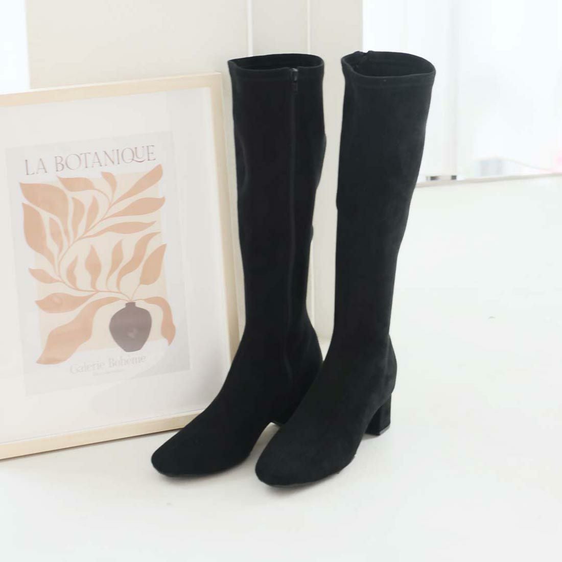 スクエアトゥストレッチロングブーツ