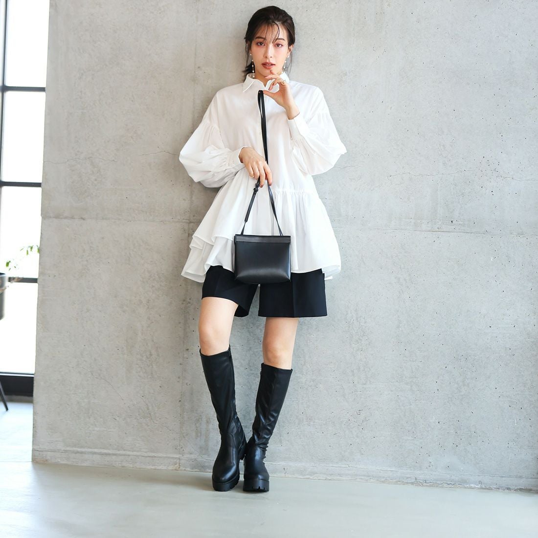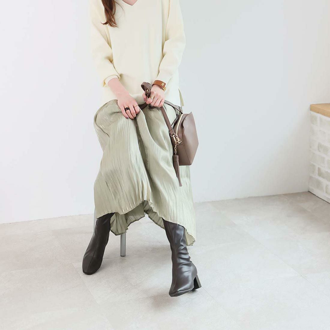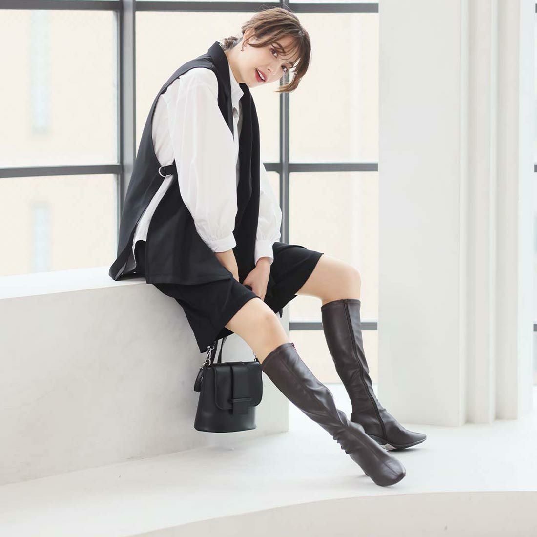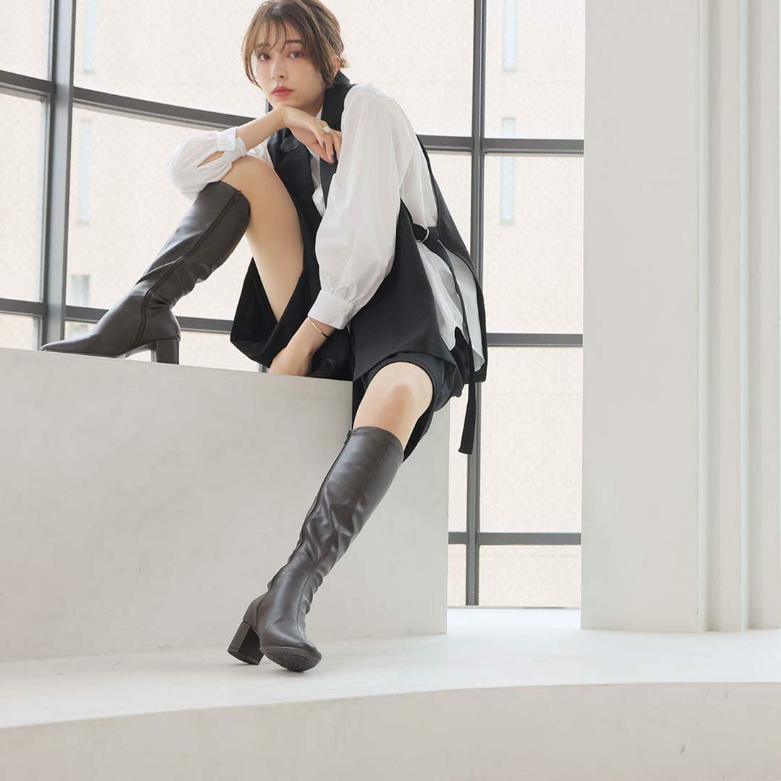 スクエアトゥストレッチロングブーツ