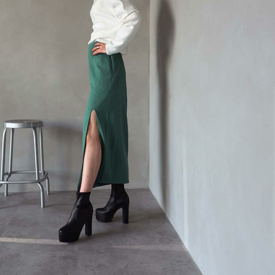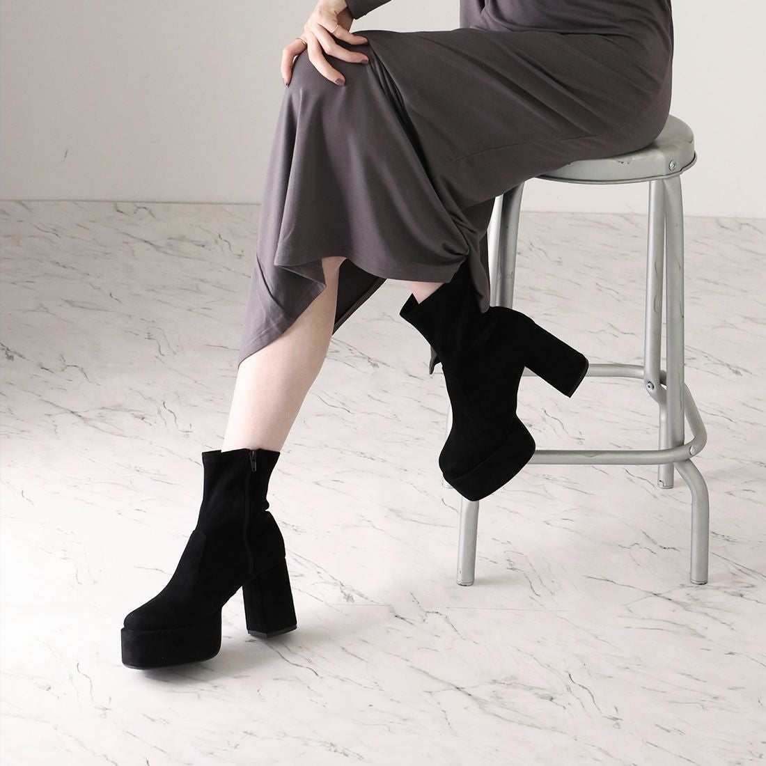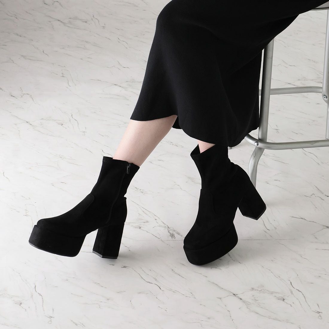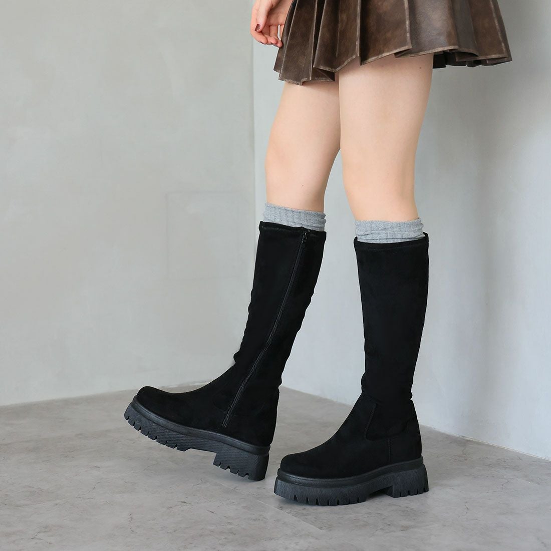 厚底ストレッチミドルブーツ