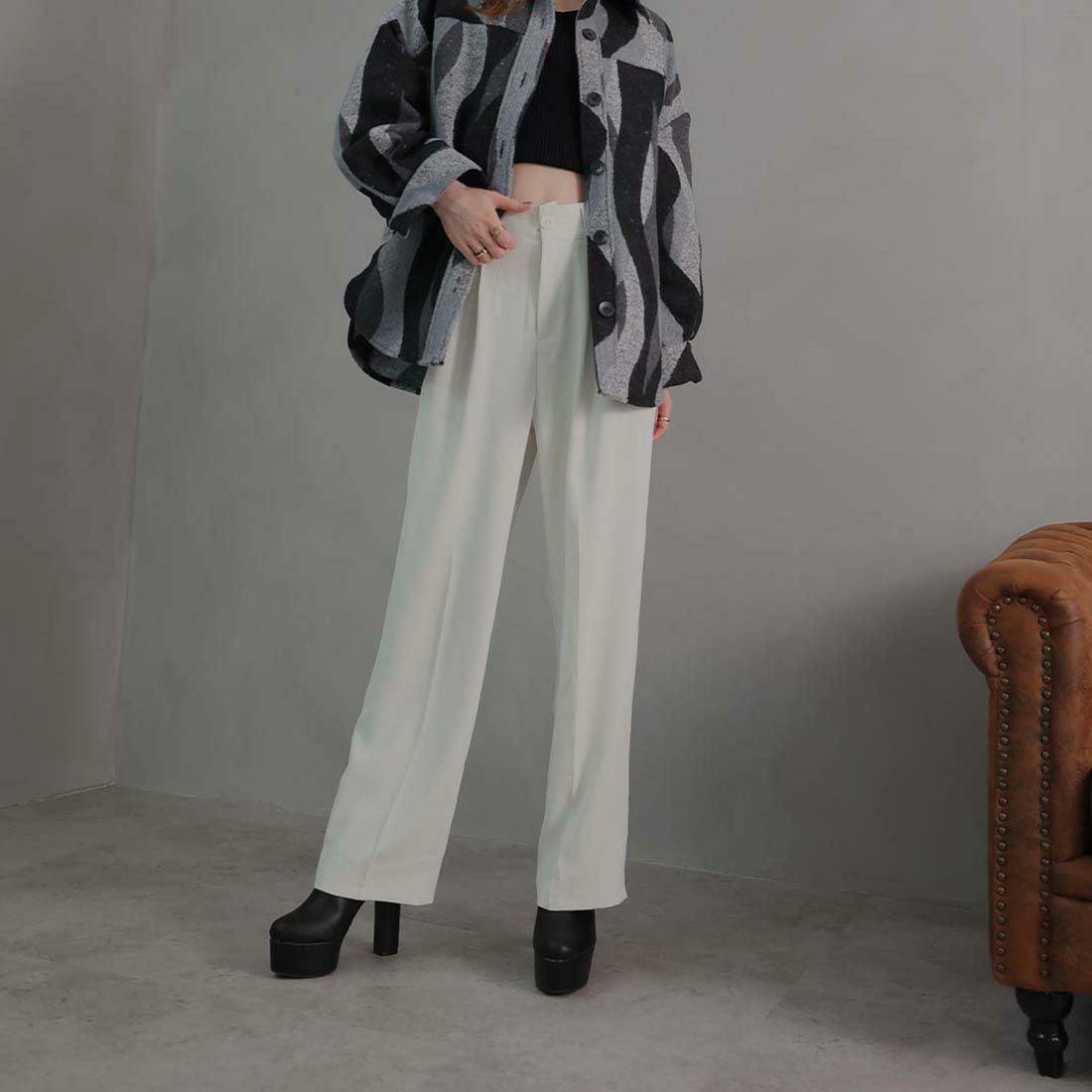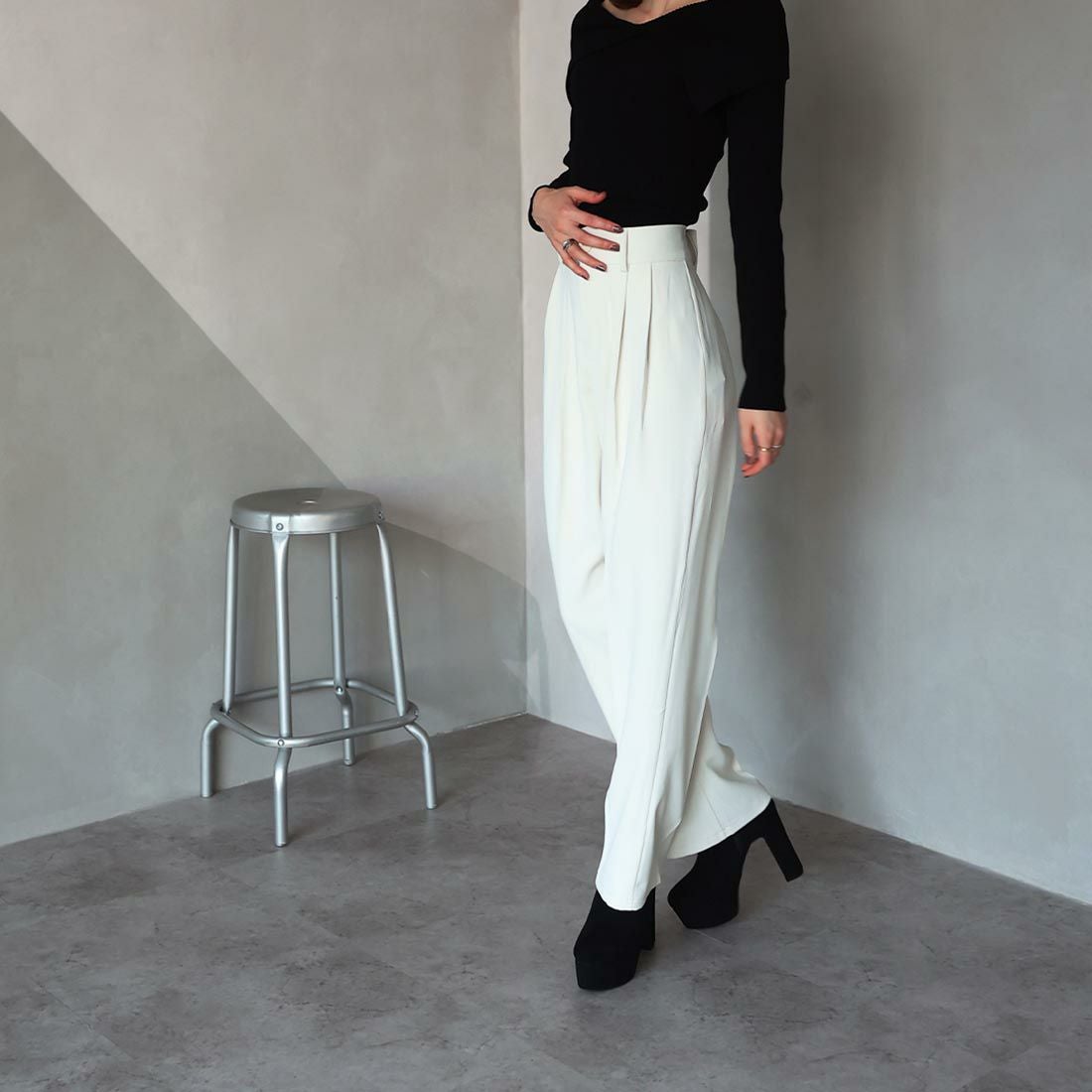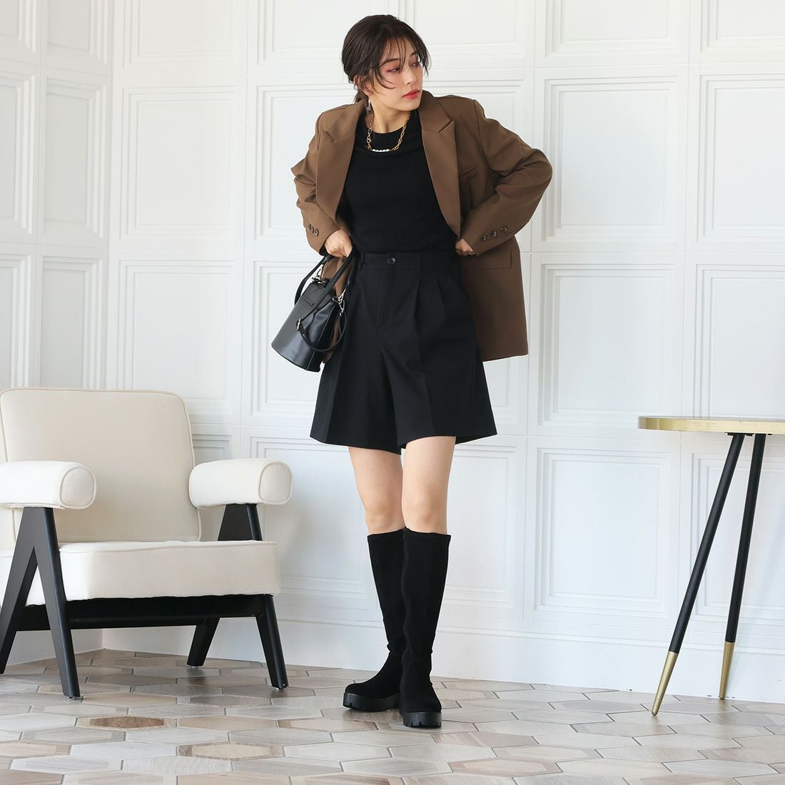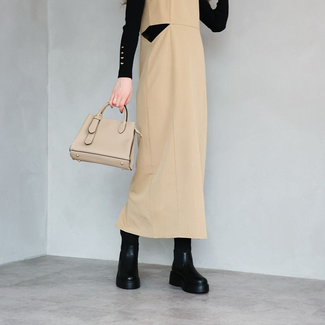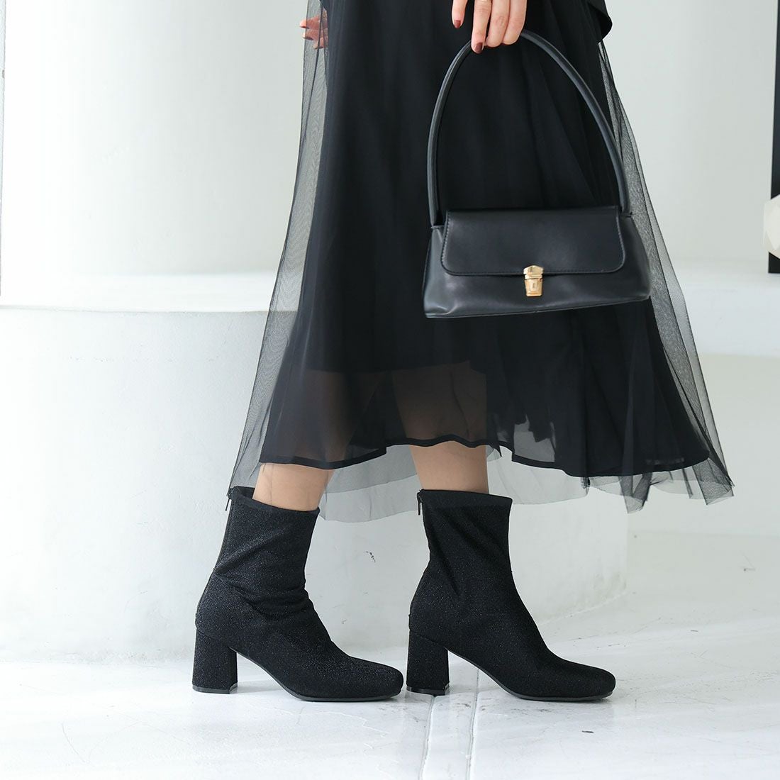 厚底ストレッチミドルブーツ