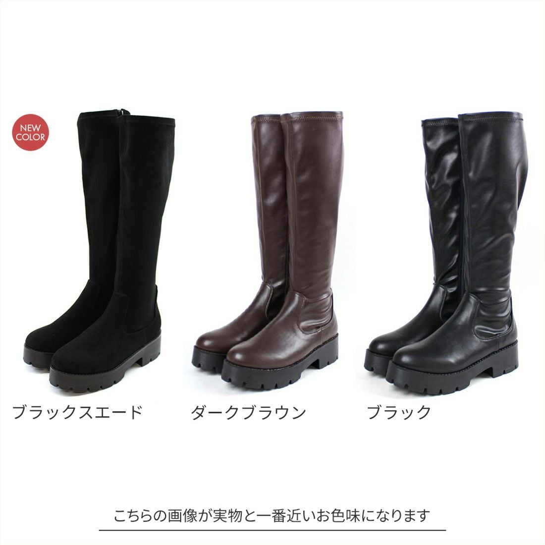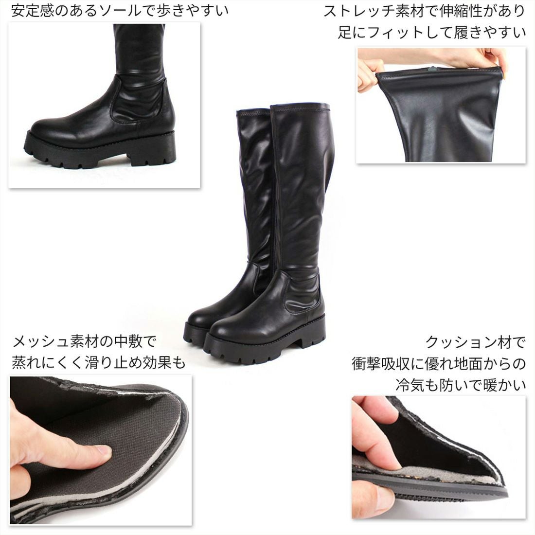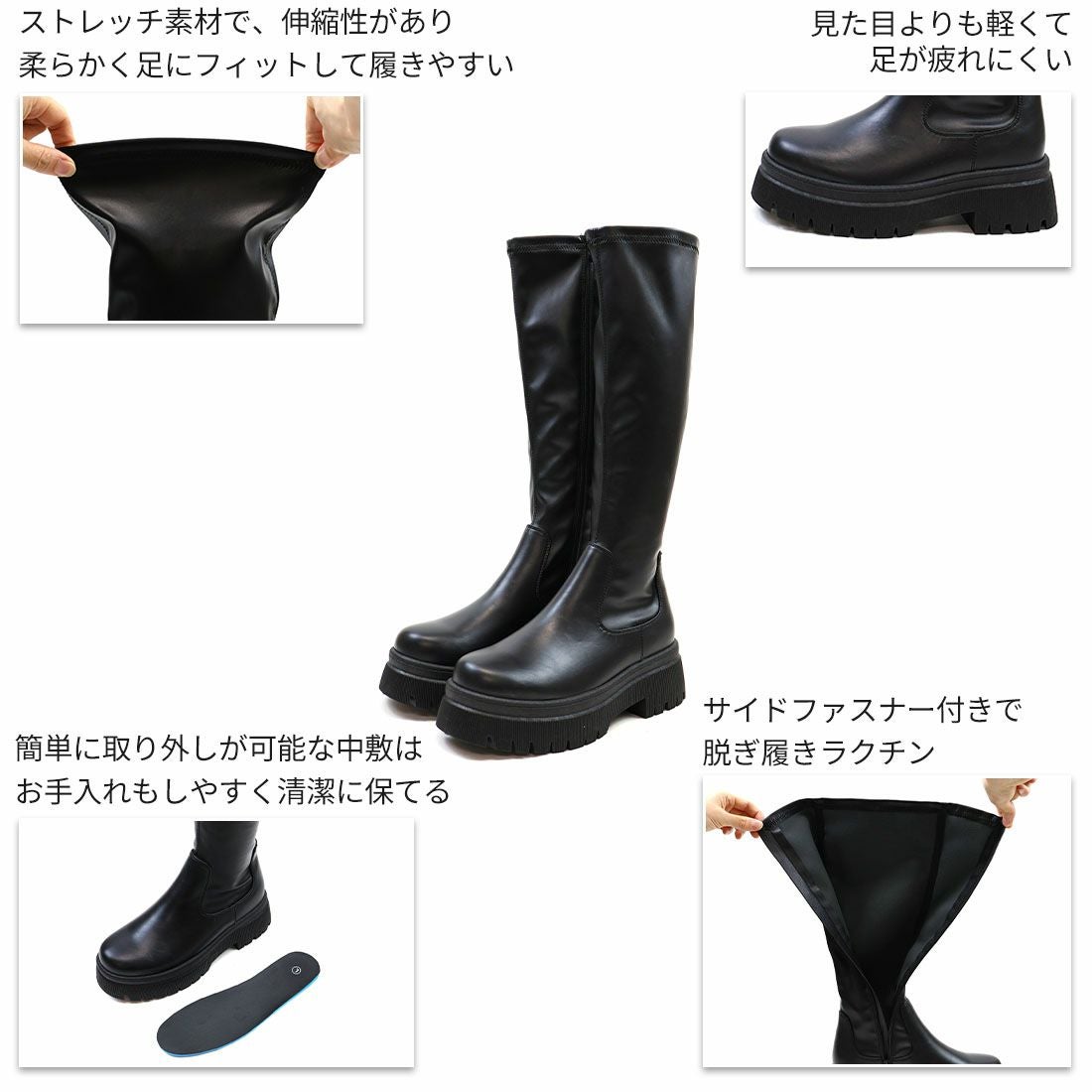 厚底フィットストレッチロングブーツ