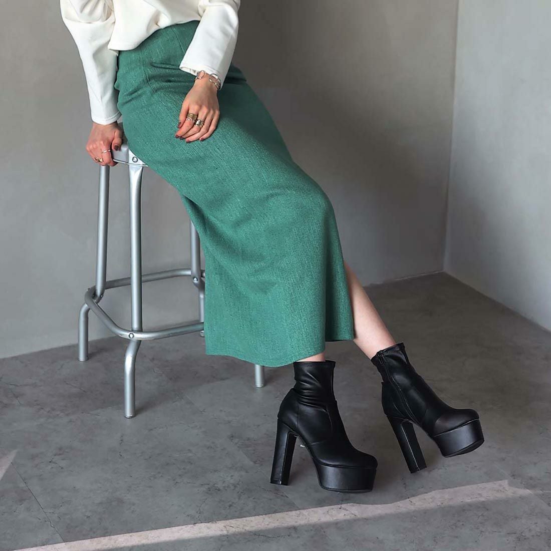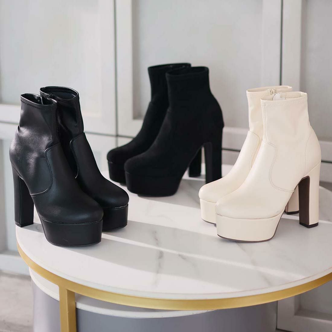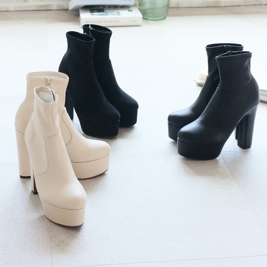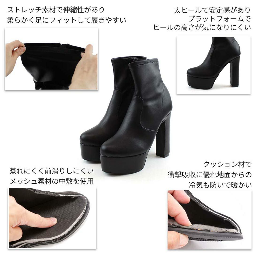プラットフォームストレッチショートブーツ