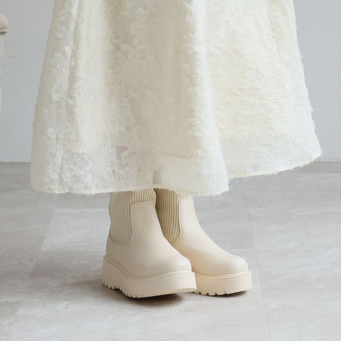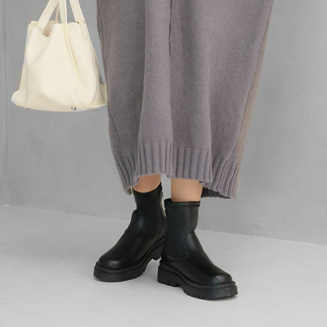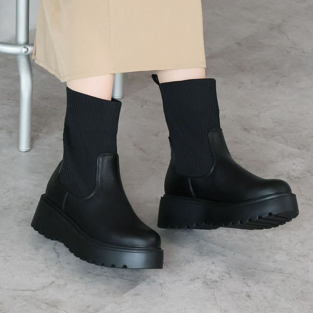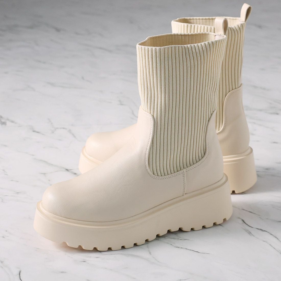 厚底ニットミドルブーツ