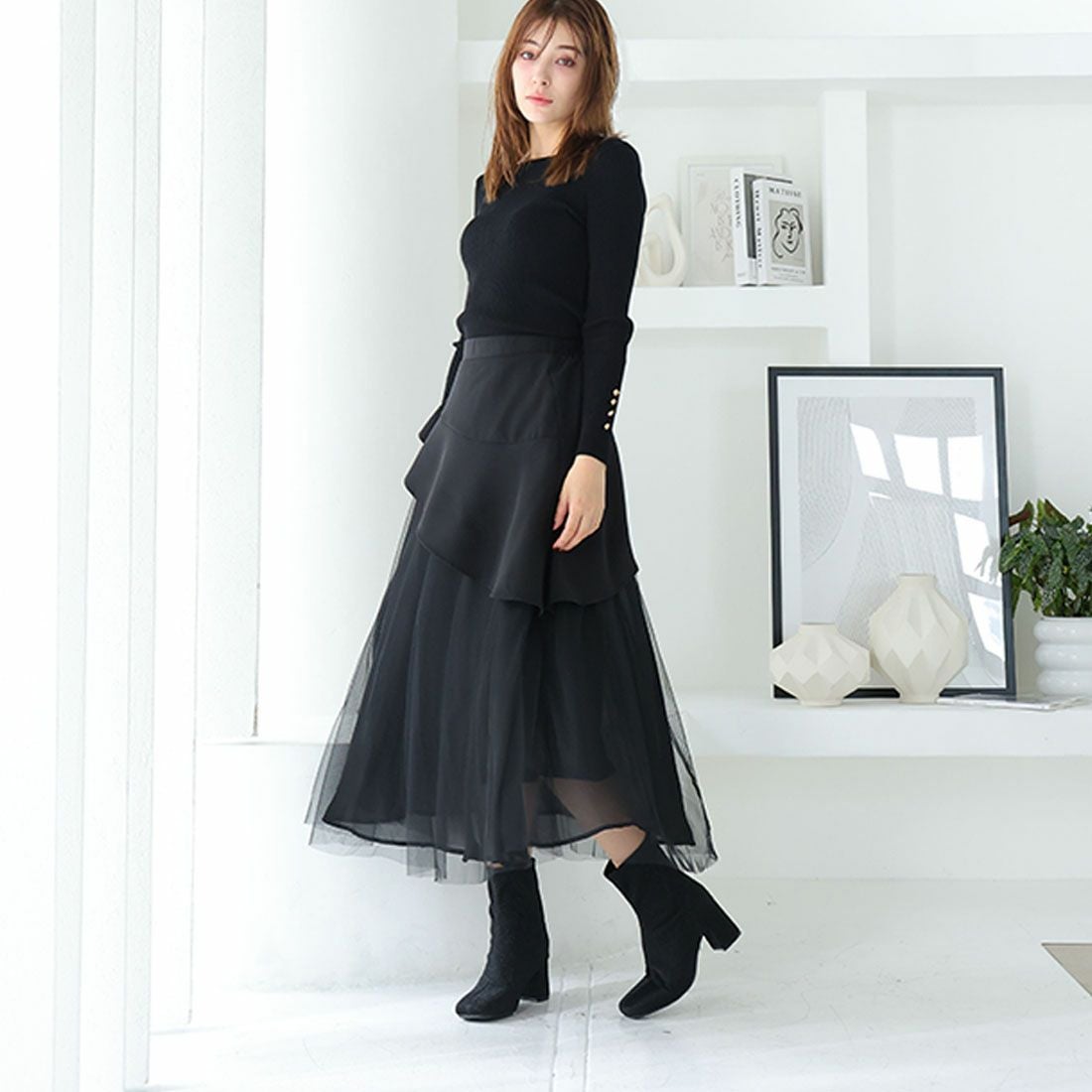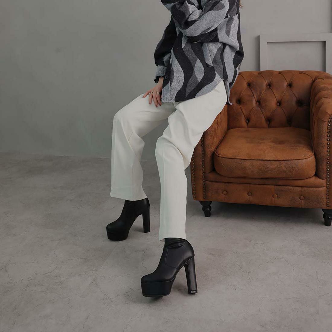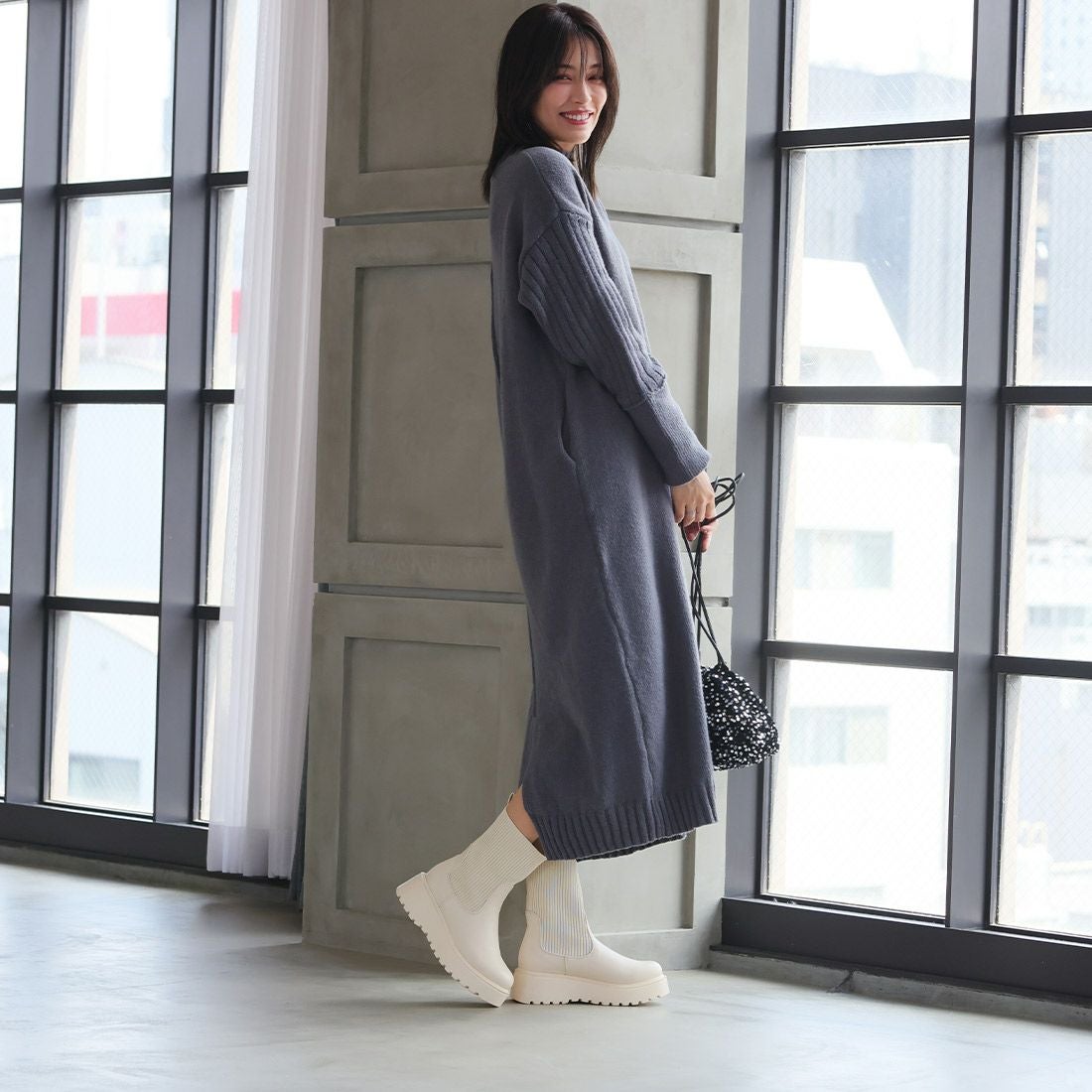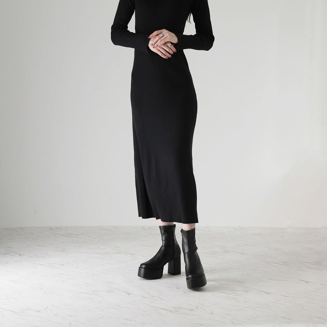 厚底ニットミドルブーツ