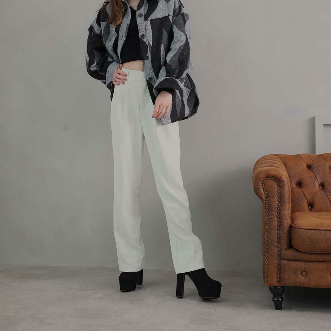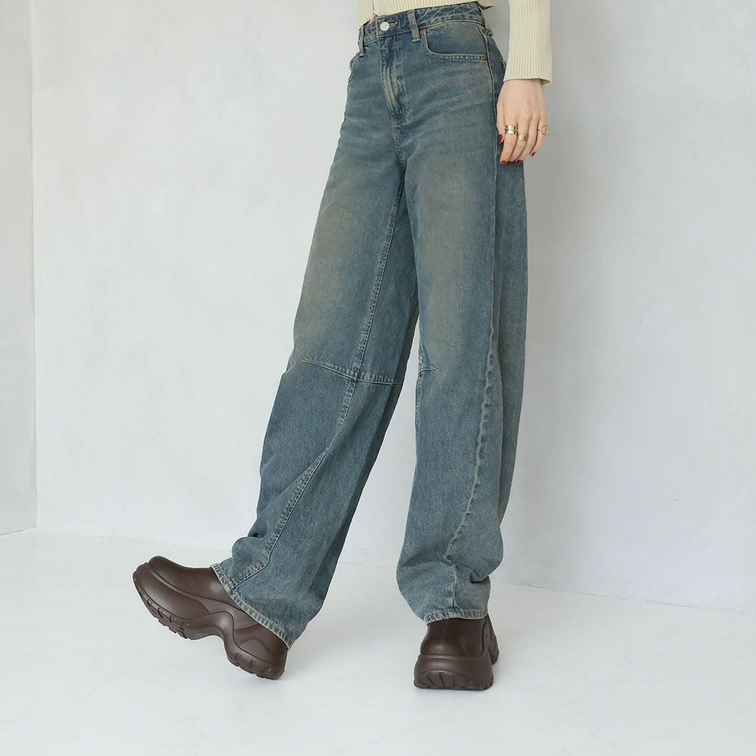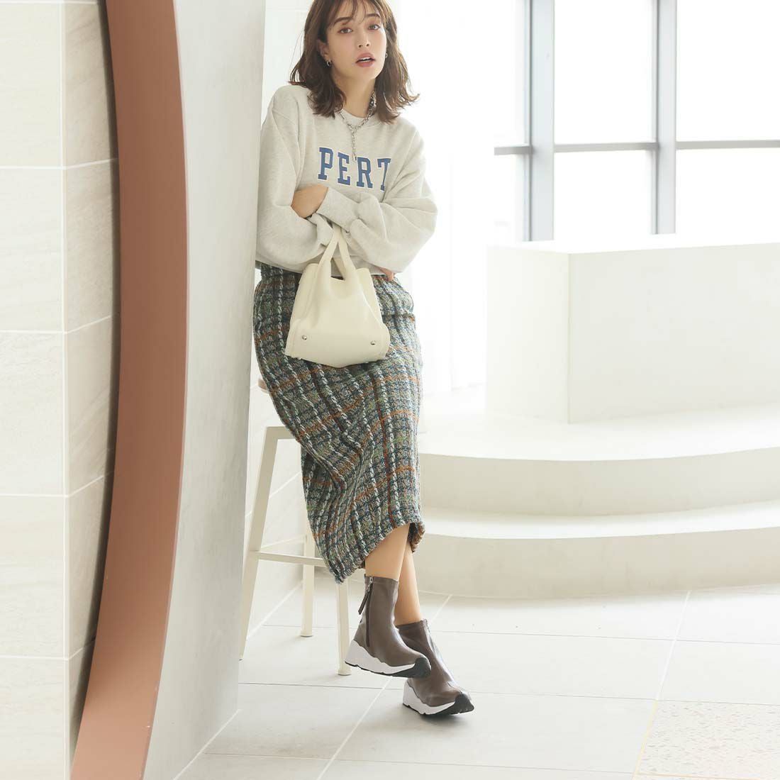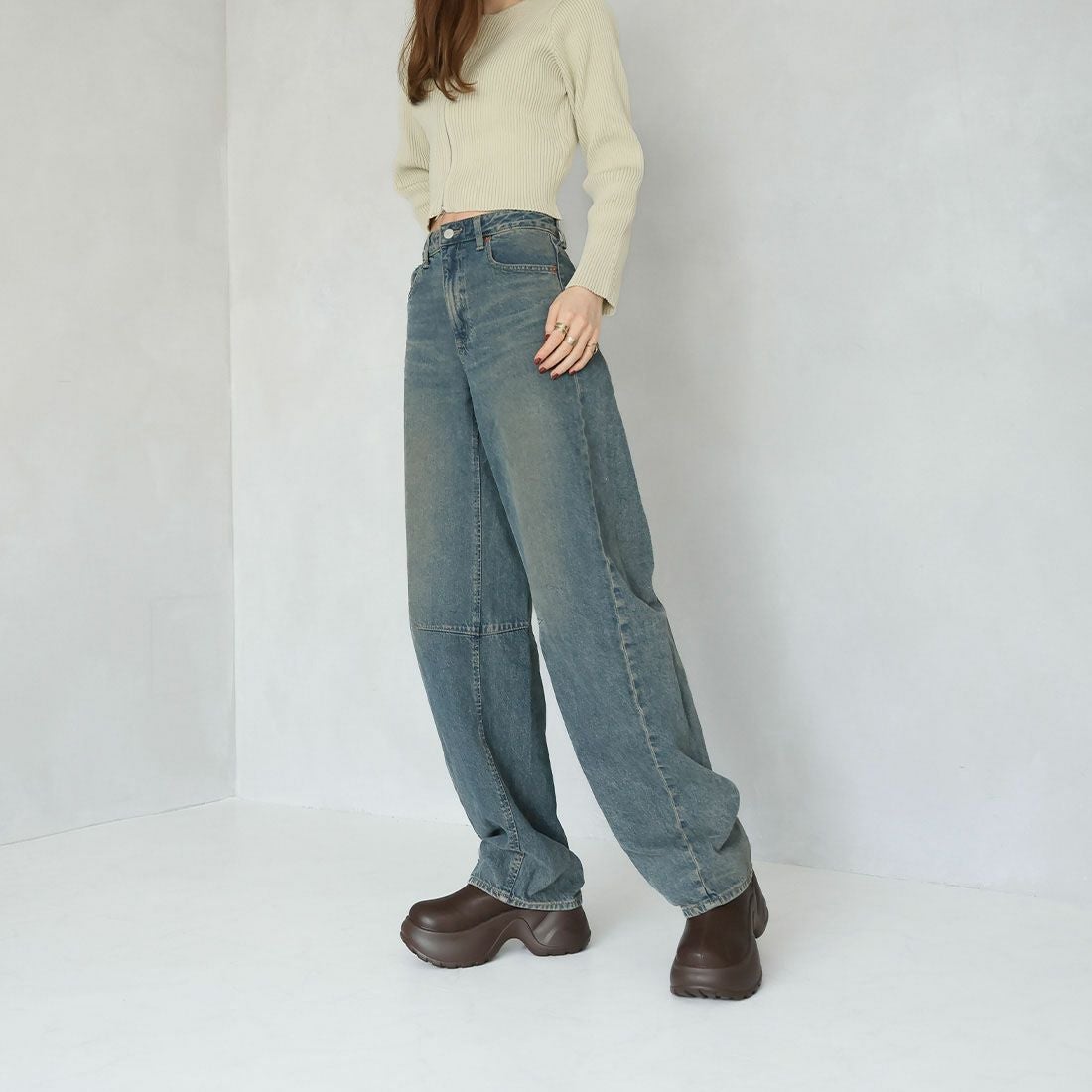 厚底ニットミドルブーツ