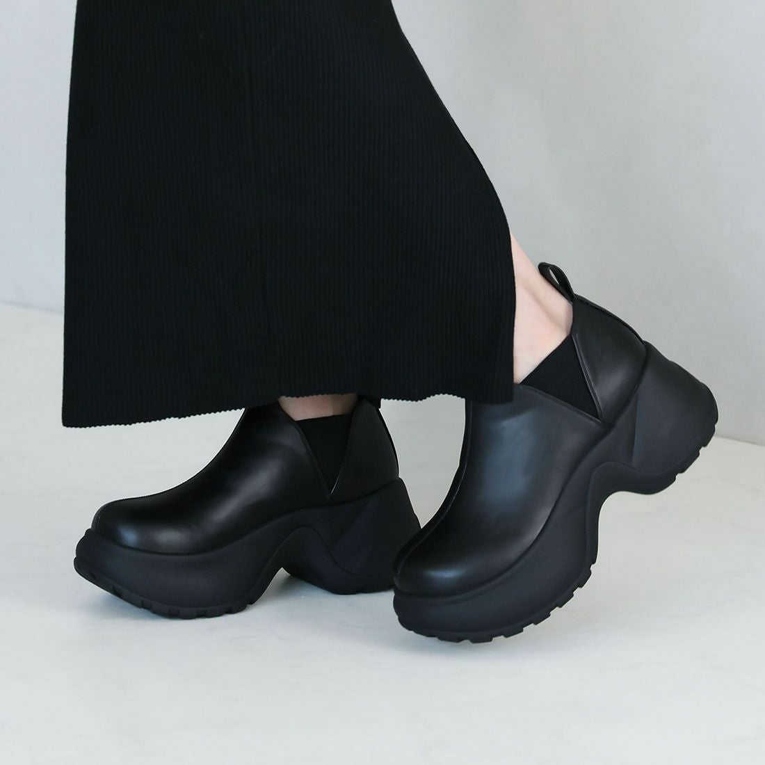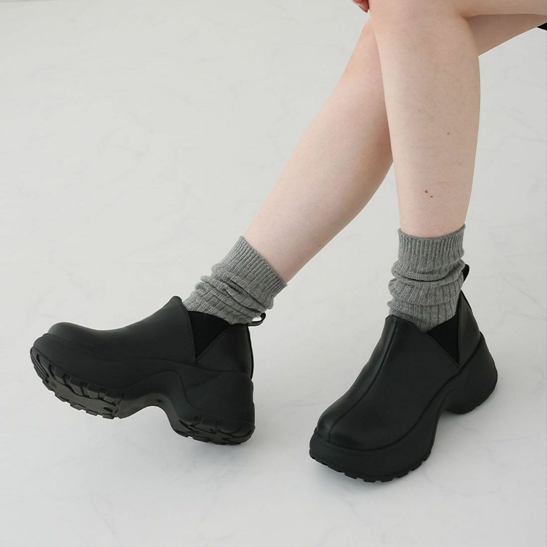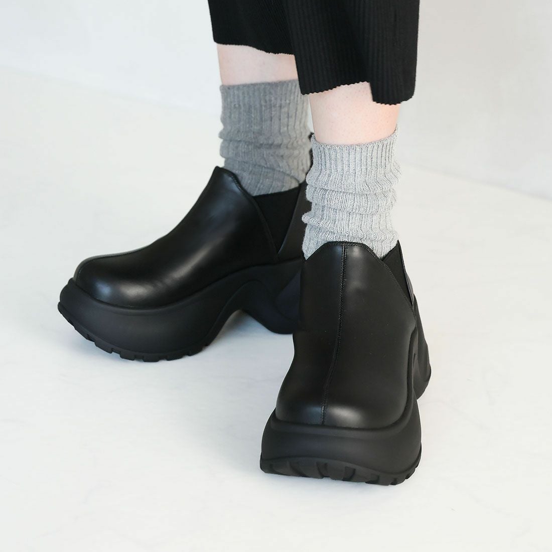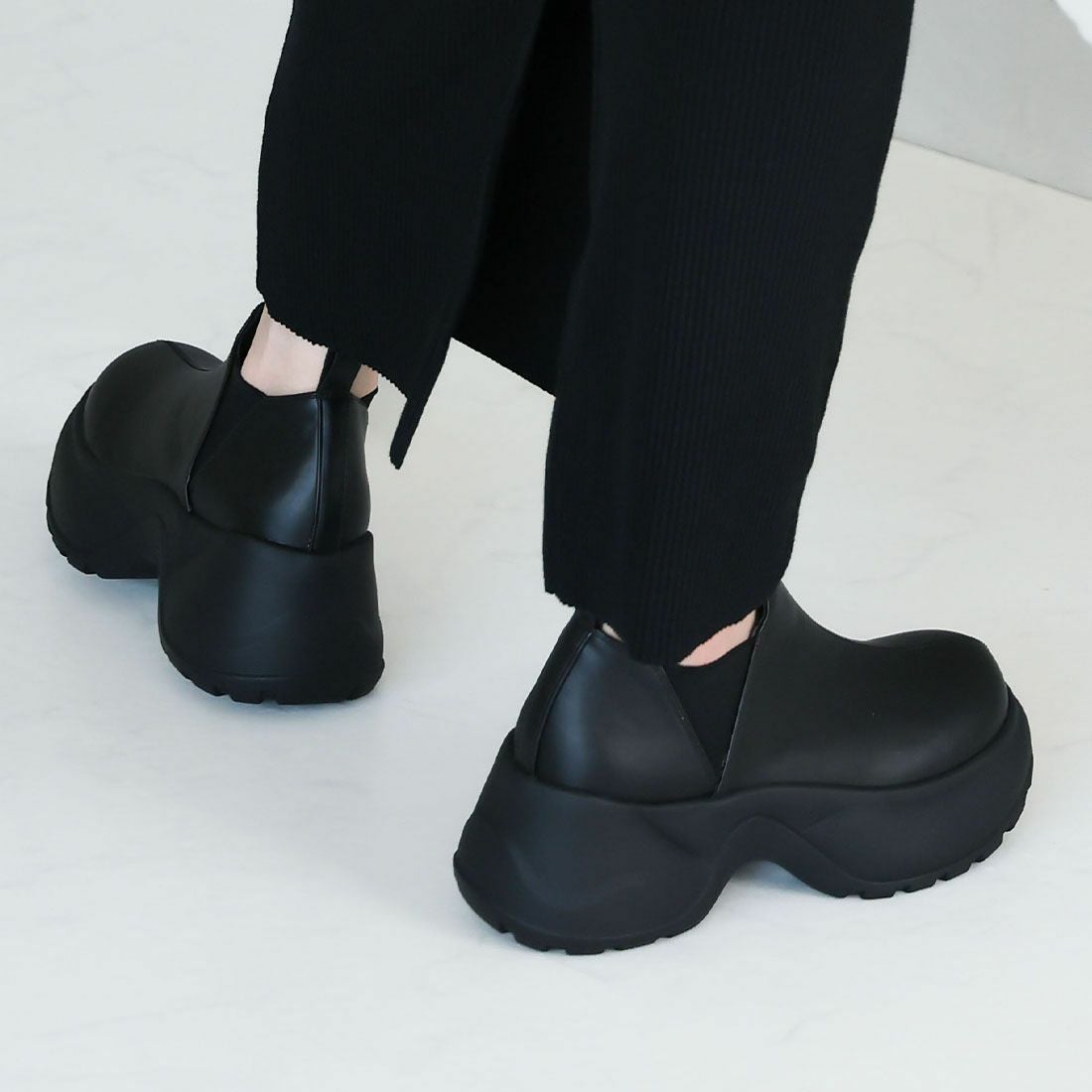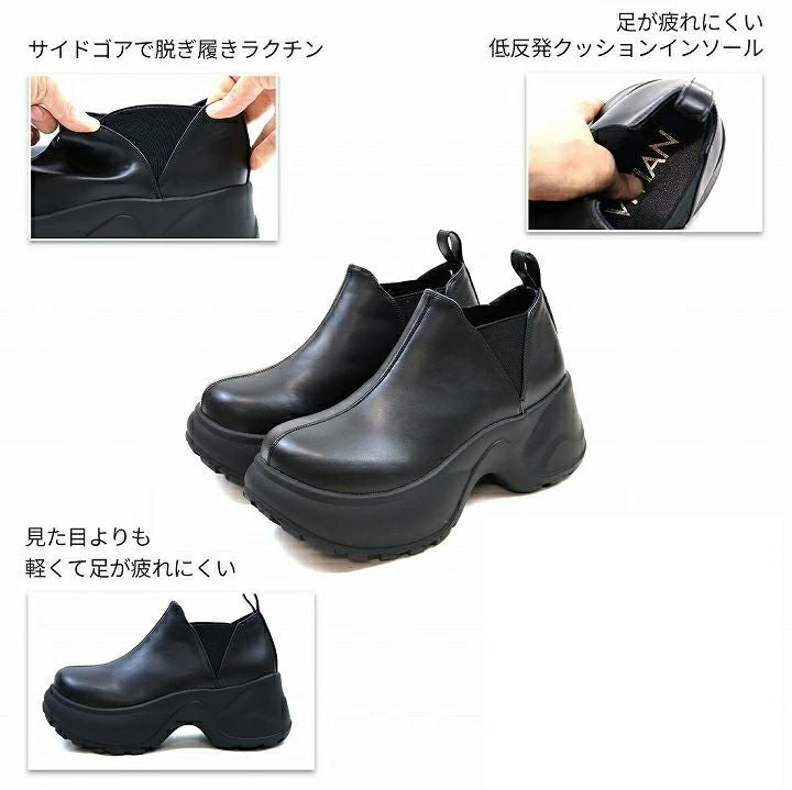 厚底スリッポンアンクルブーツ