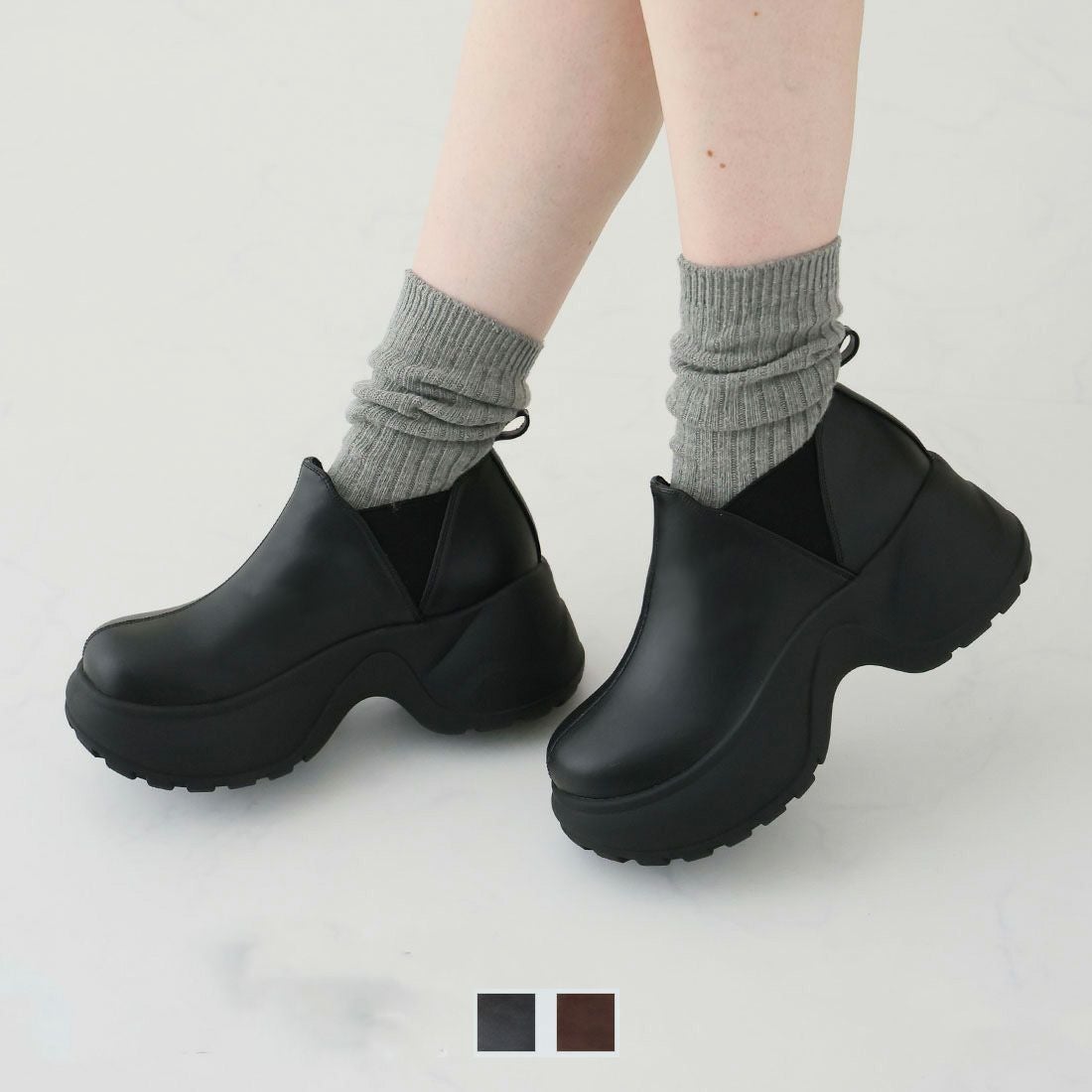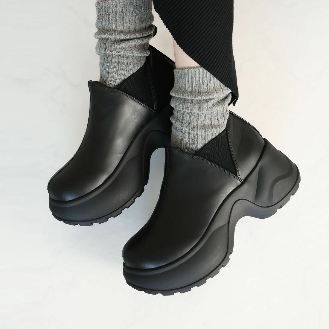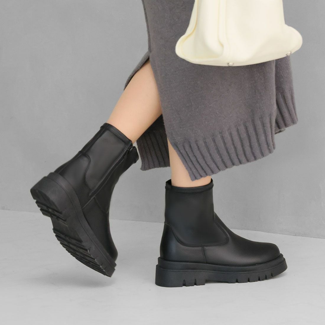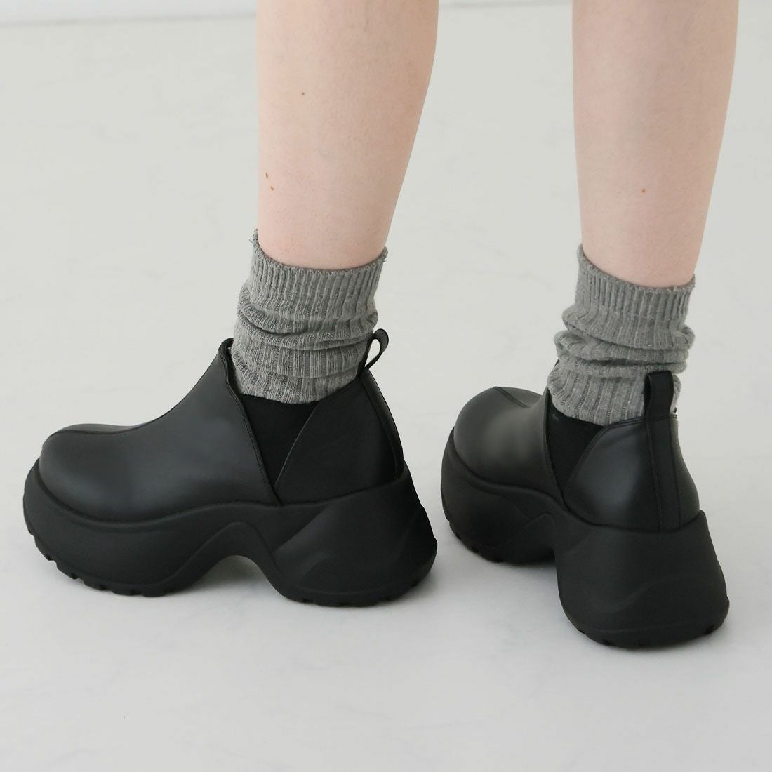 厚底スリッポンアンクルブーツ