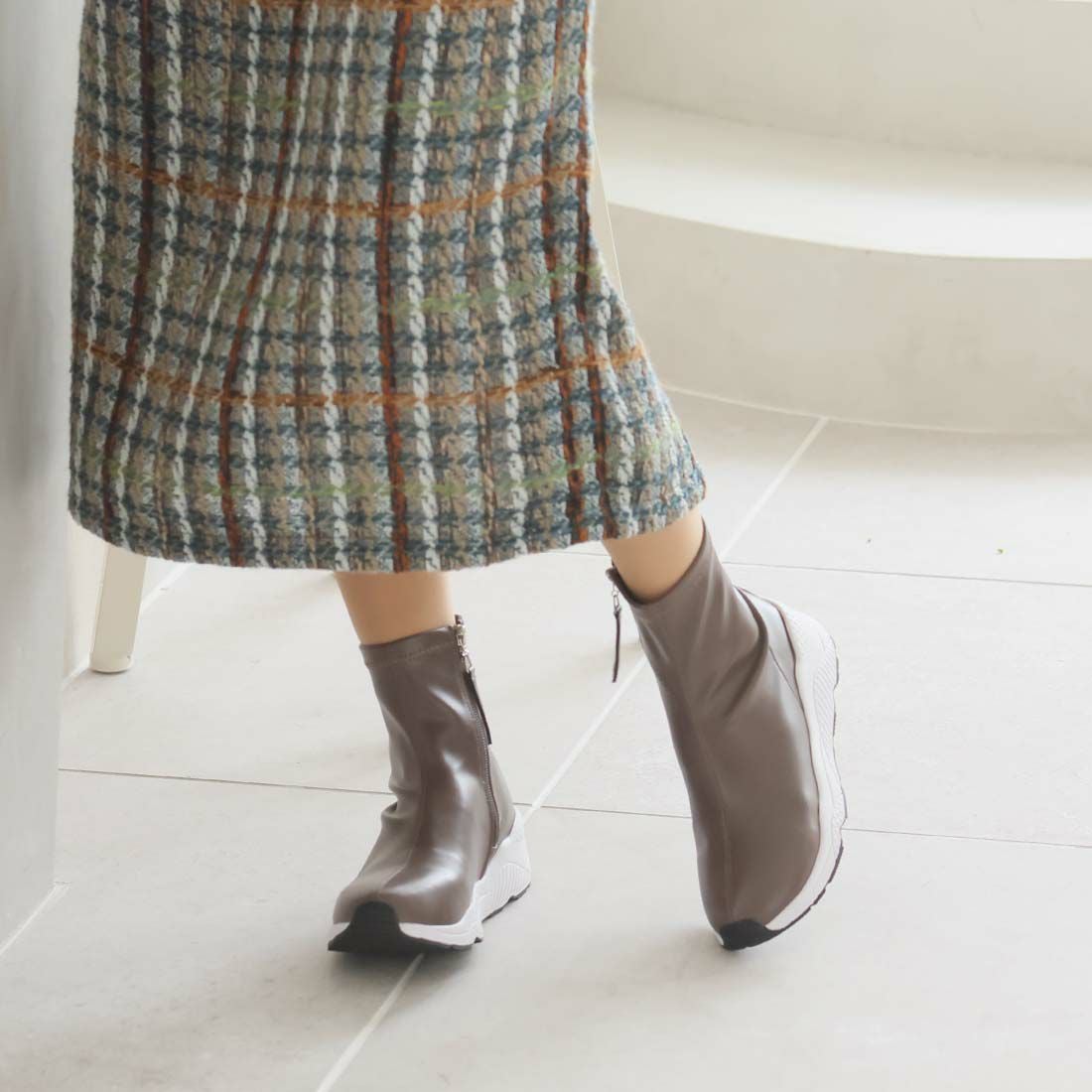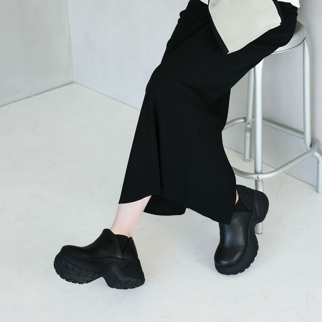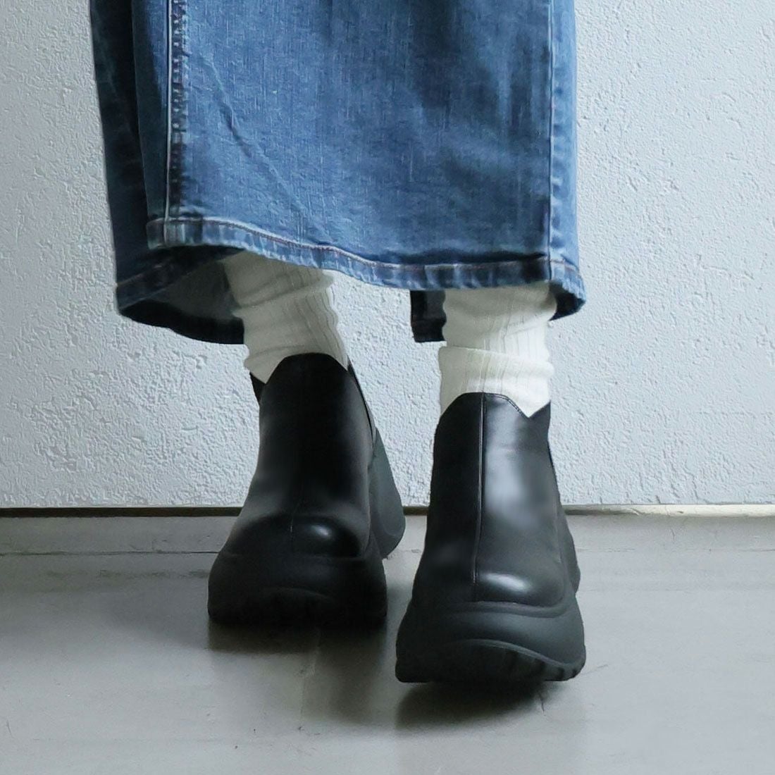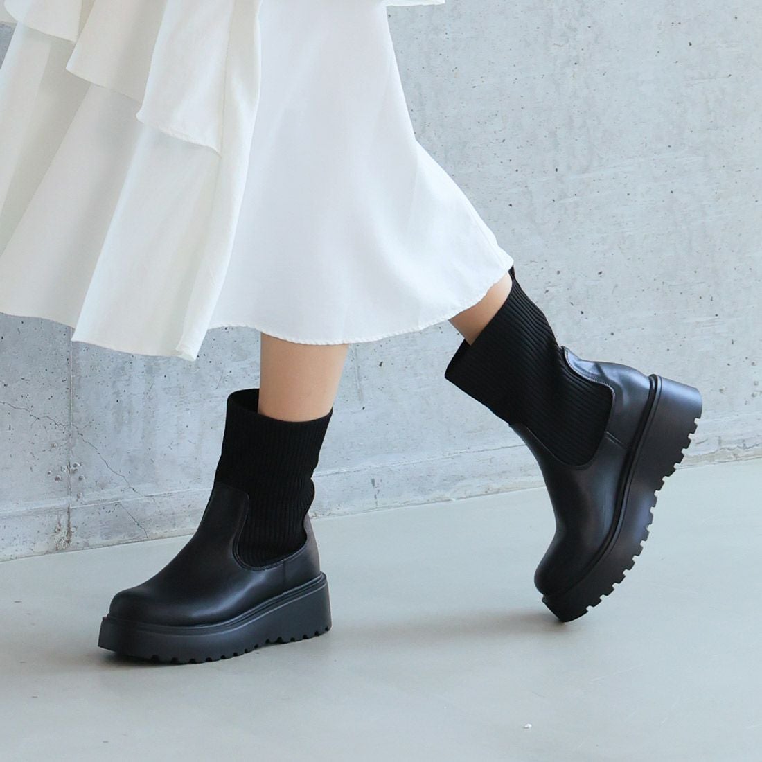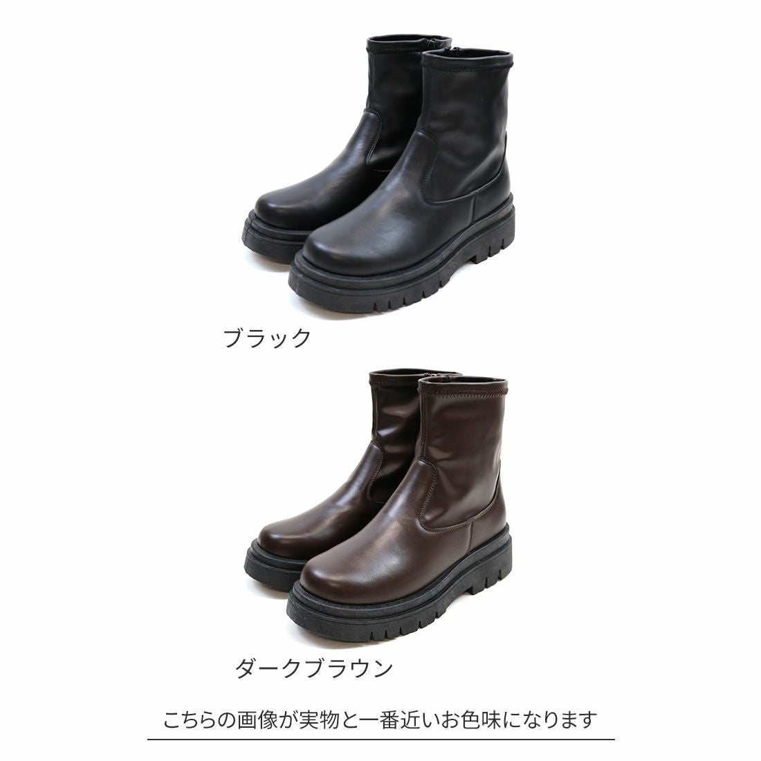 厚底スリッポンアンクルブーツ