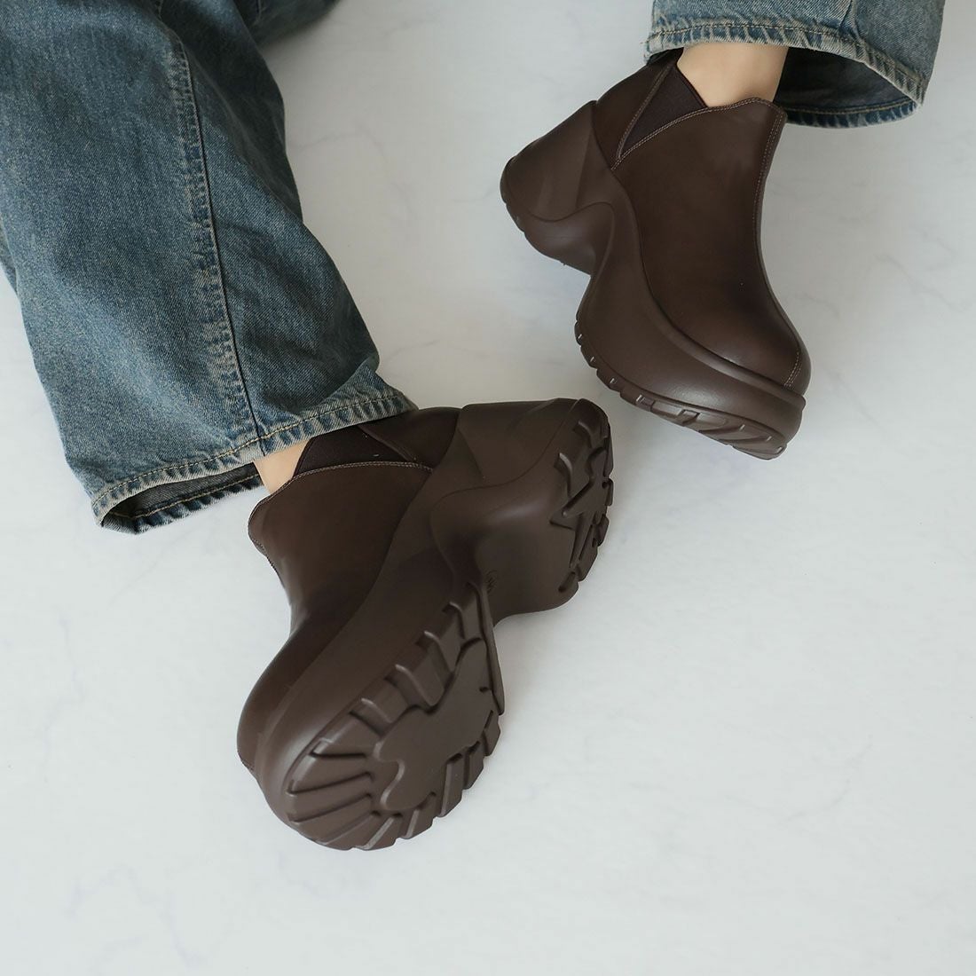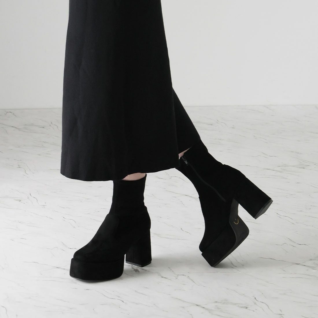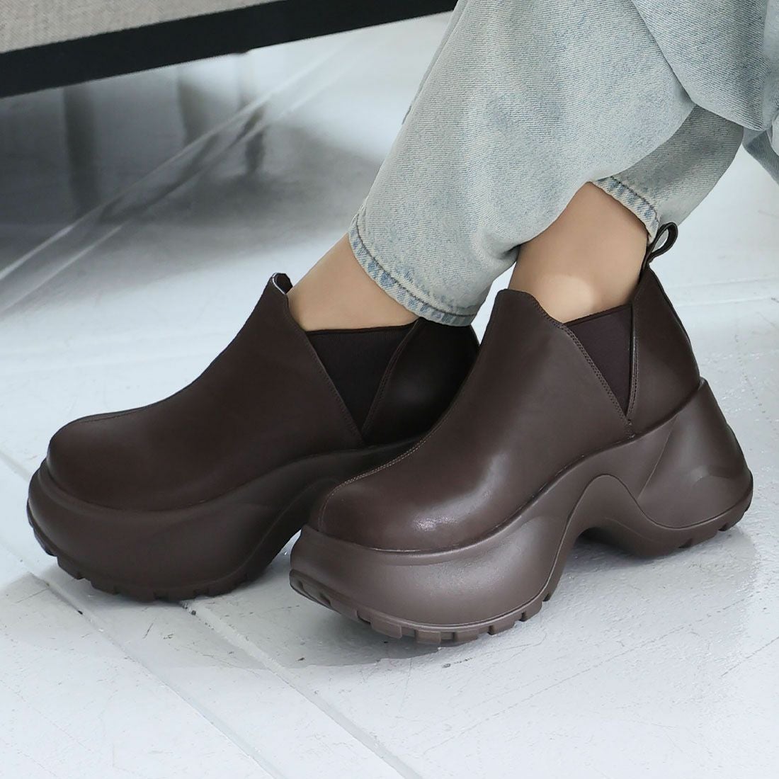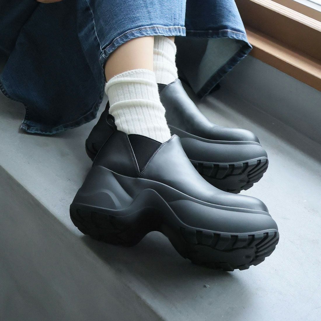 厚底スリッポンアンクルブーツ
