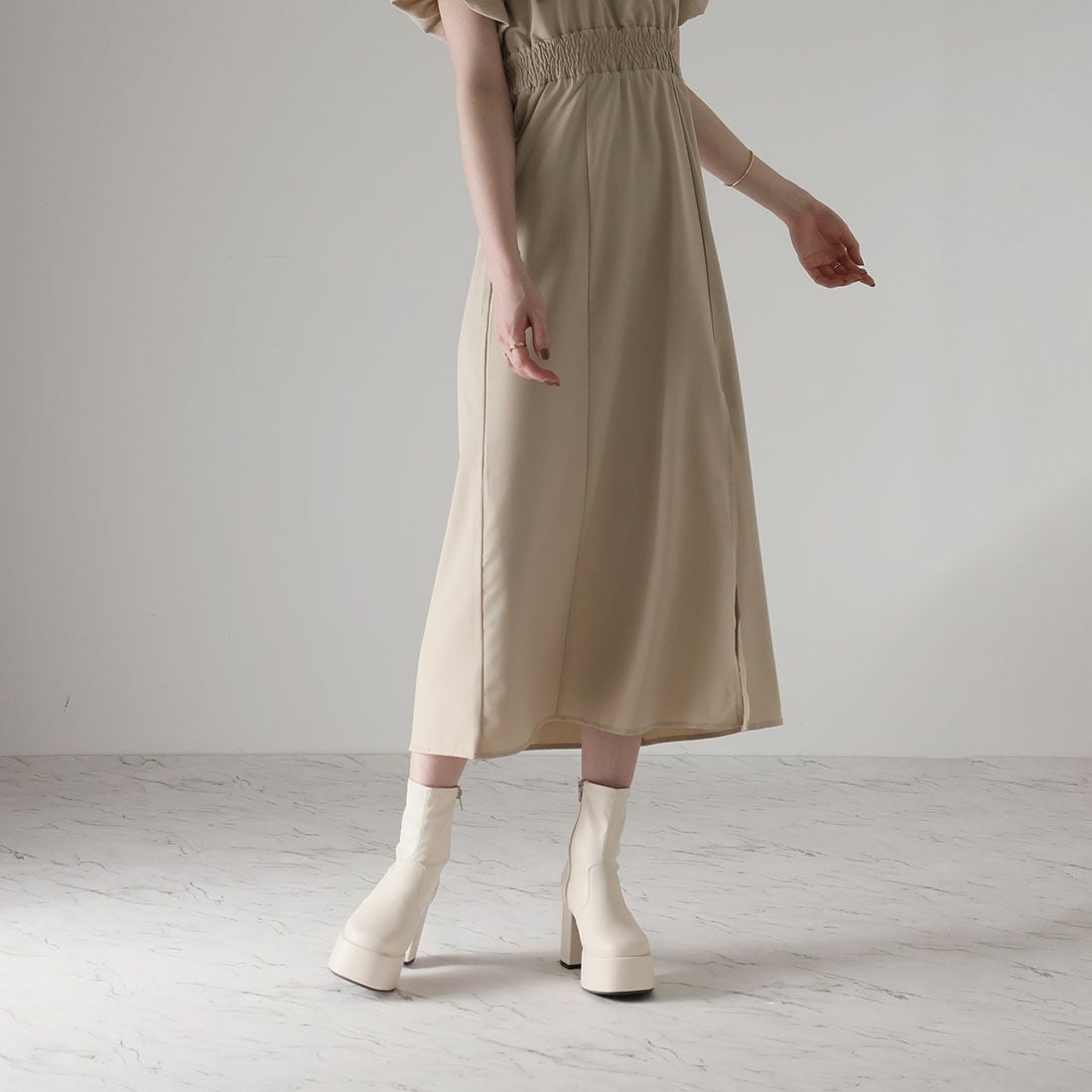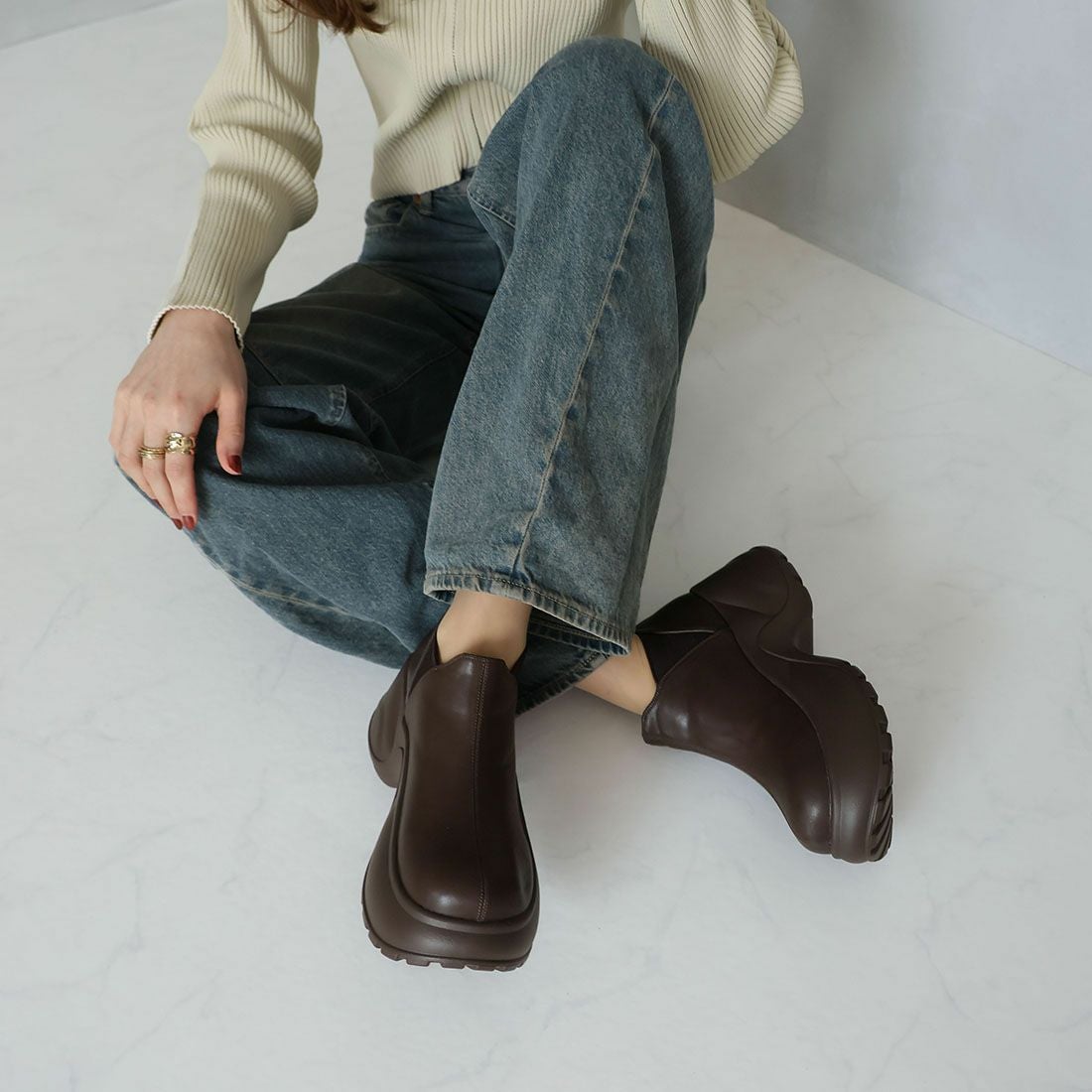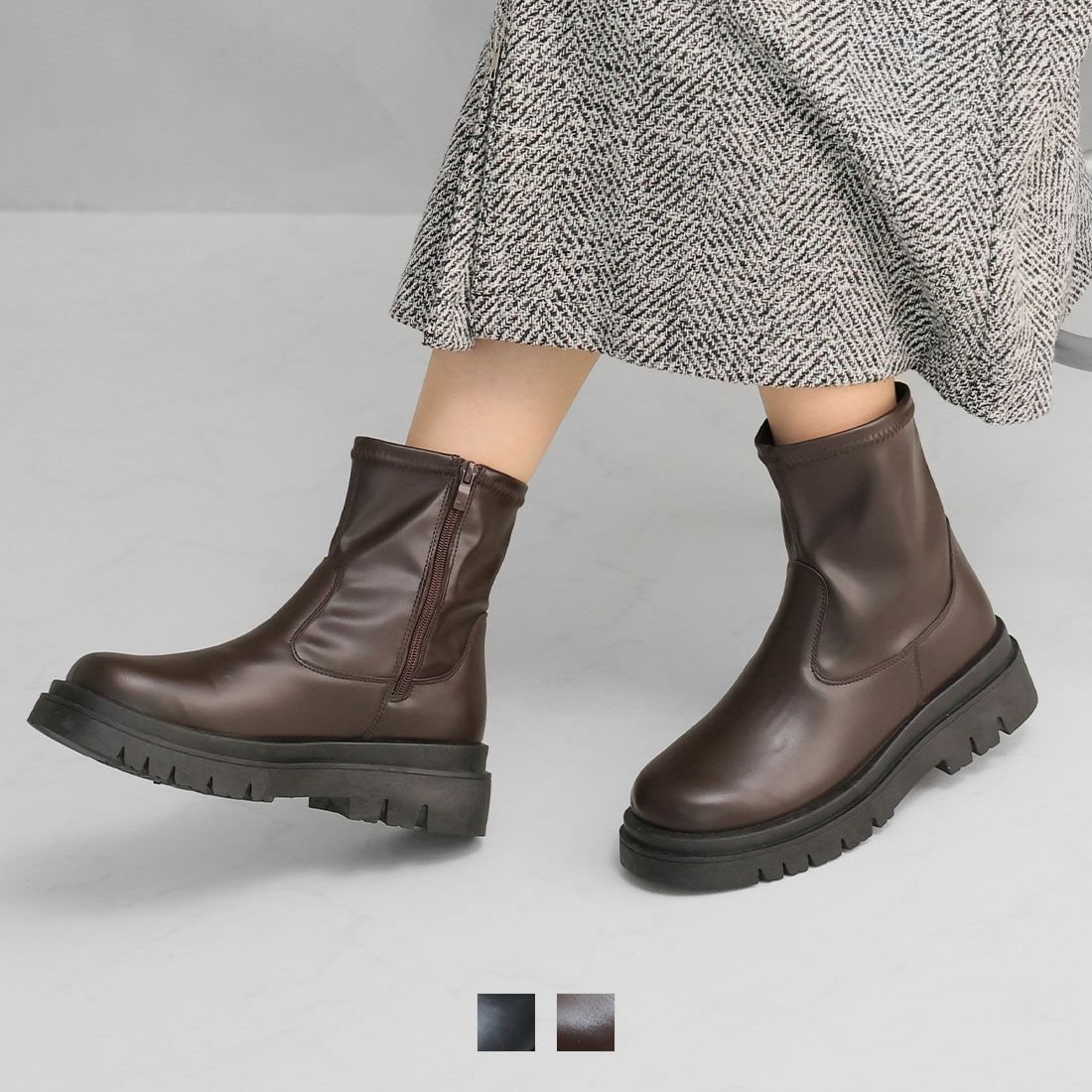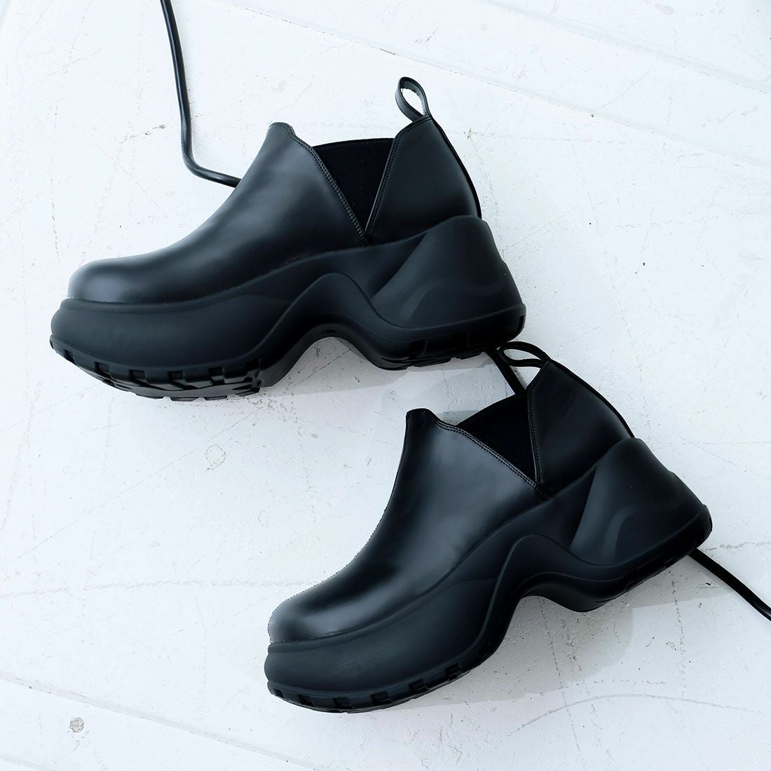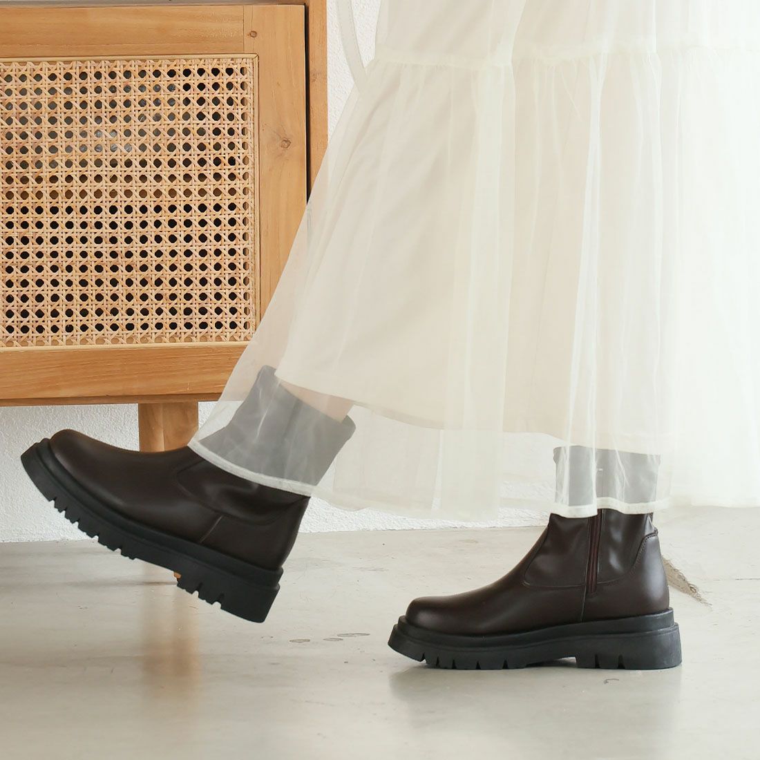 厚底スリッポンアンクルブーツ