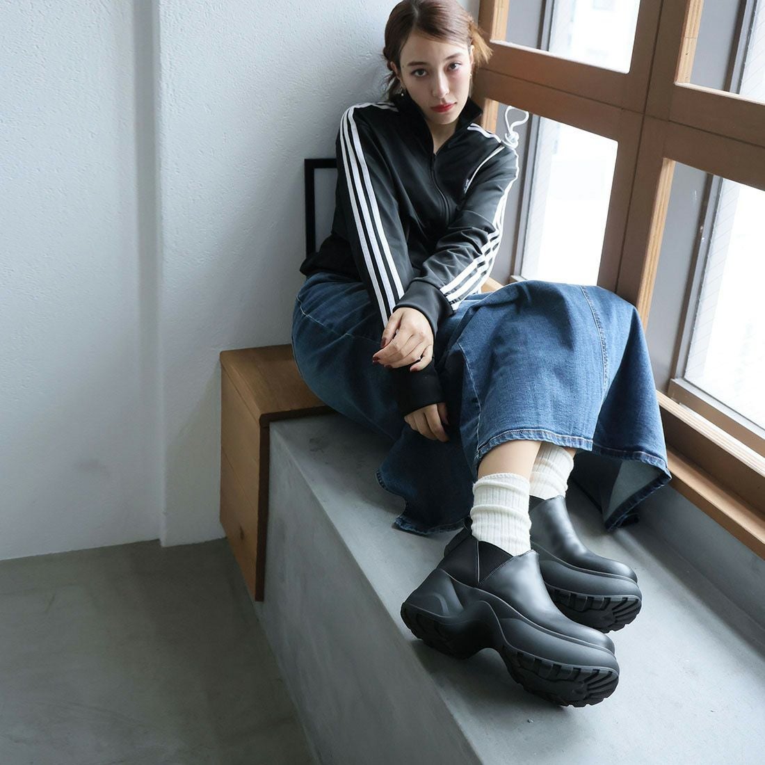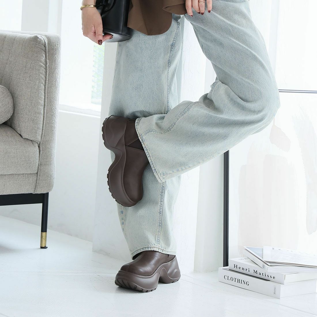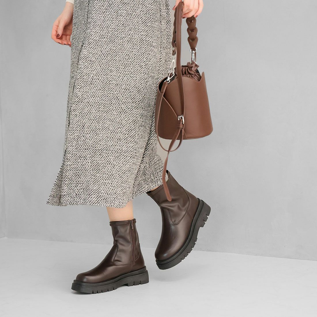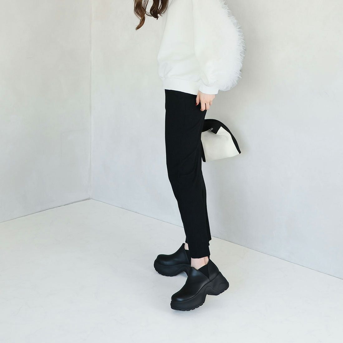 厚底スリッポンアンクルブーツ