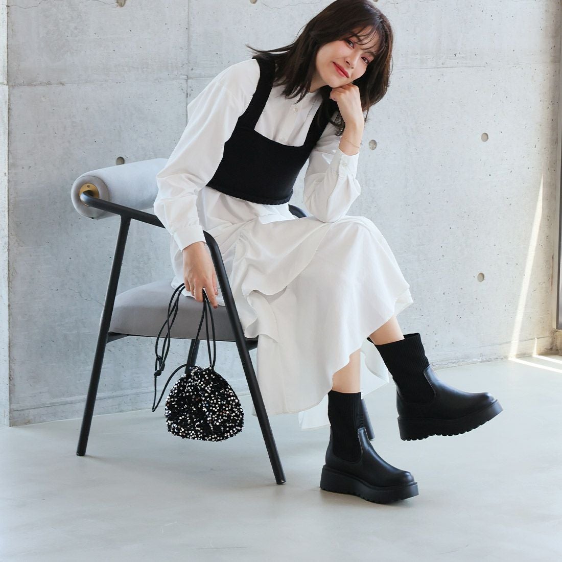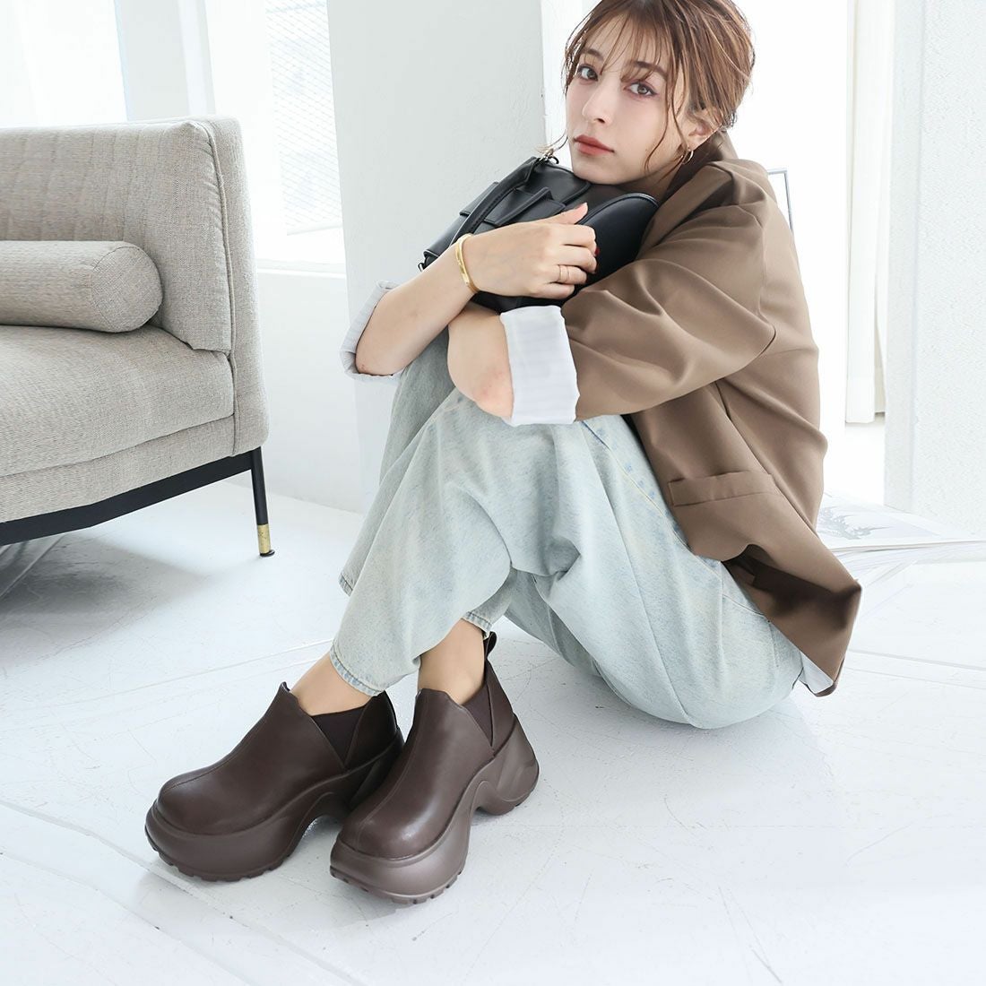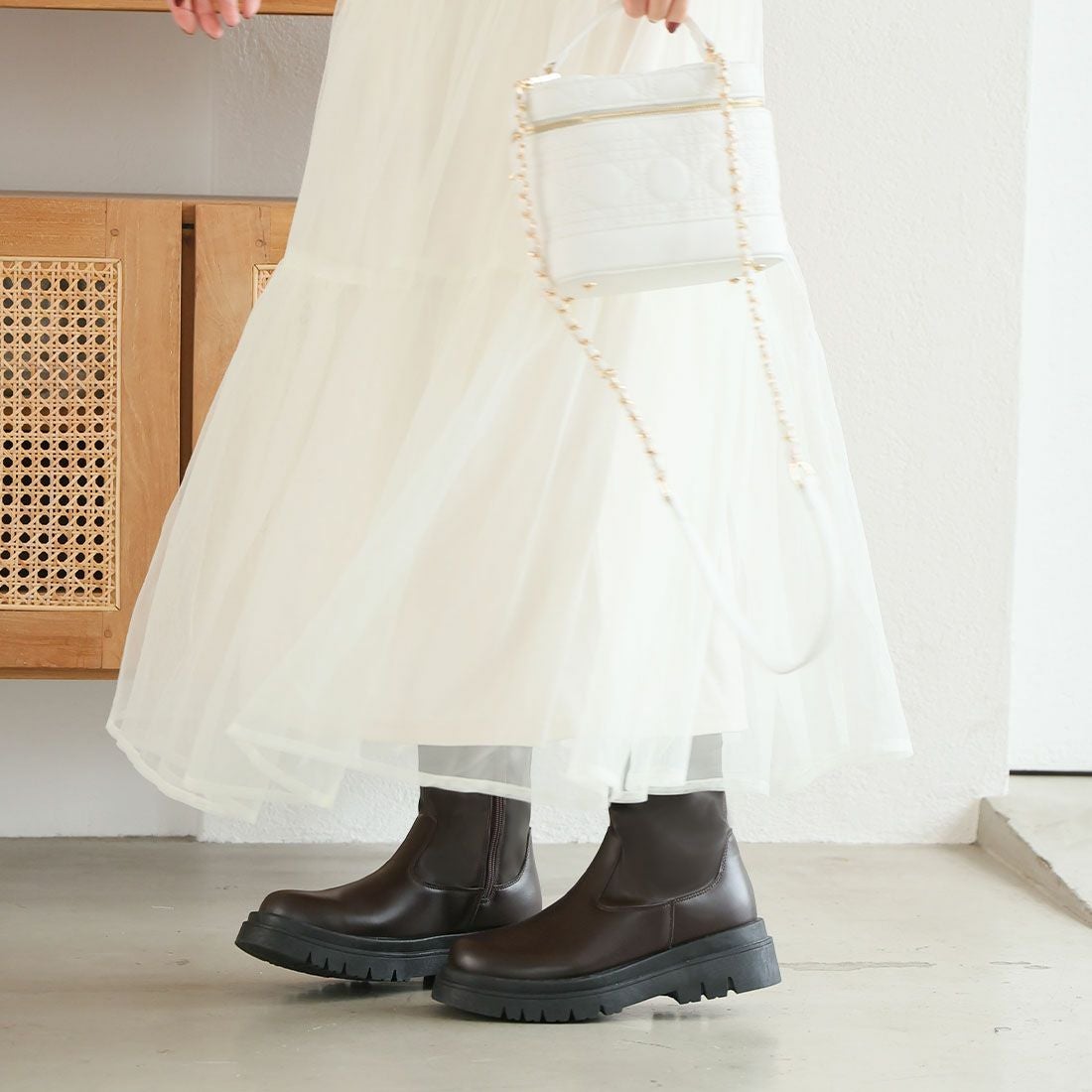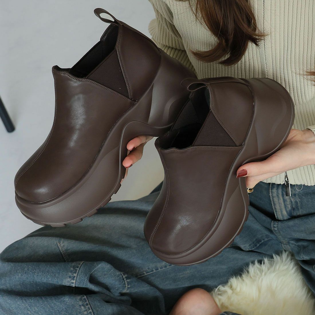 厚底サイドゴアムートンブーツ