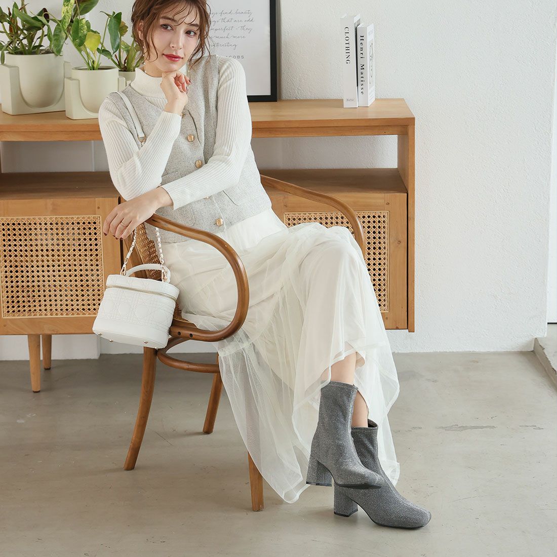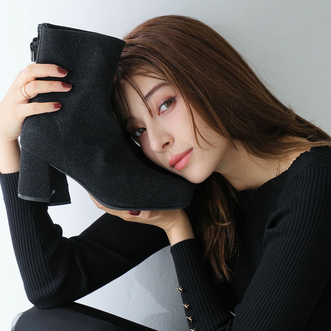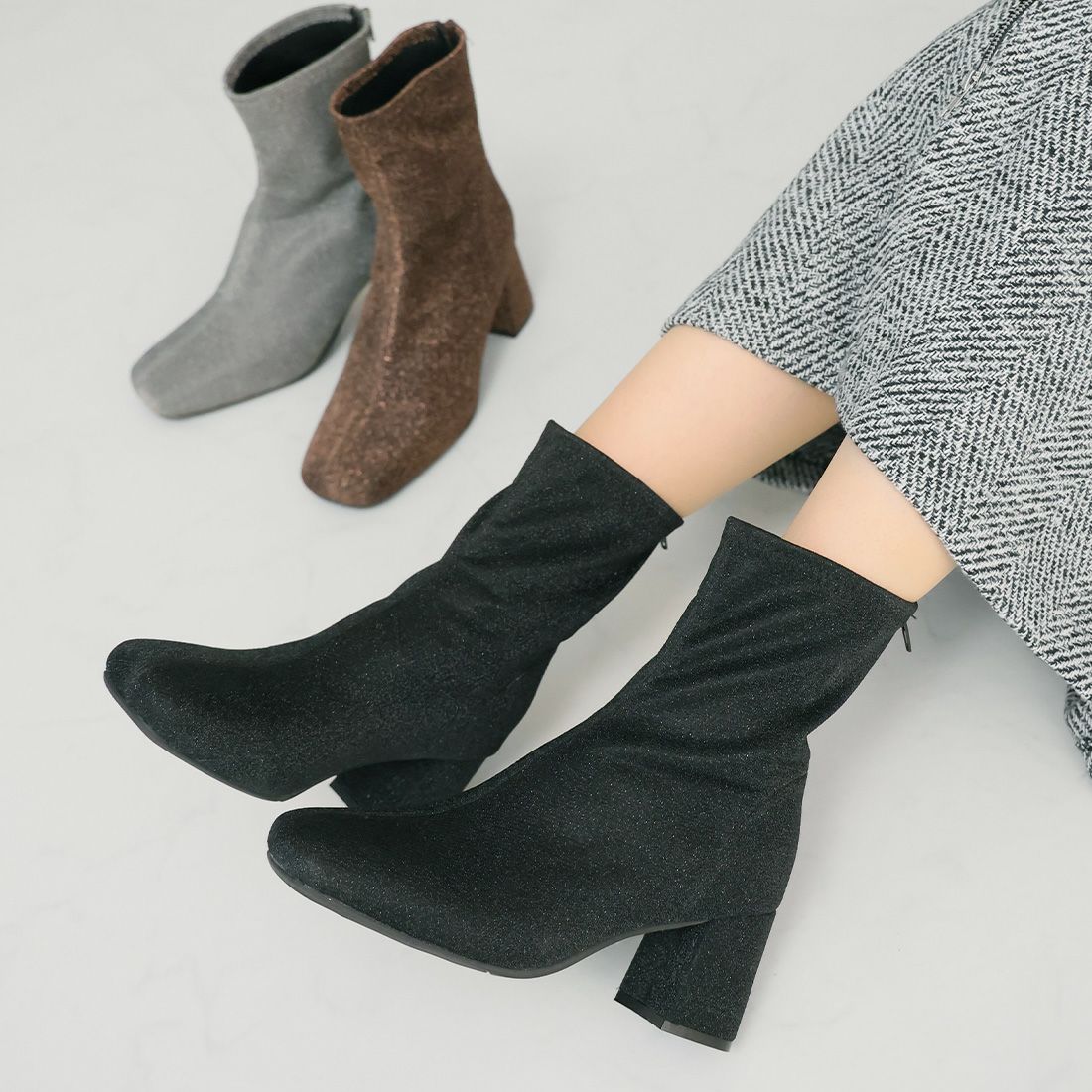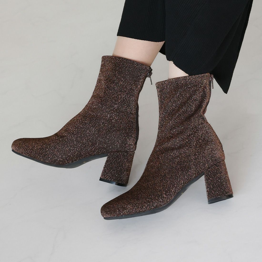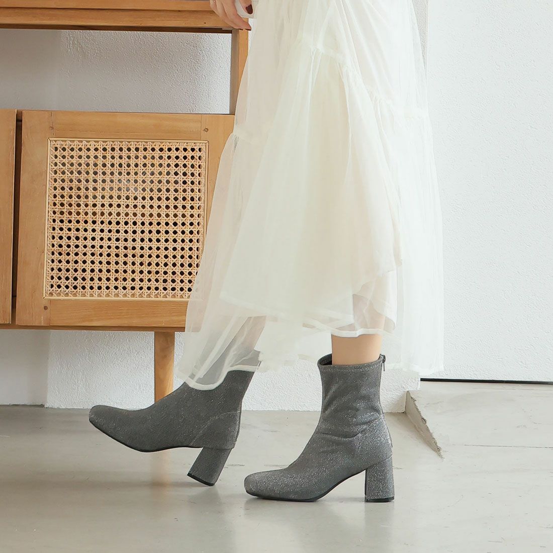 厚底ニットショートブーツ