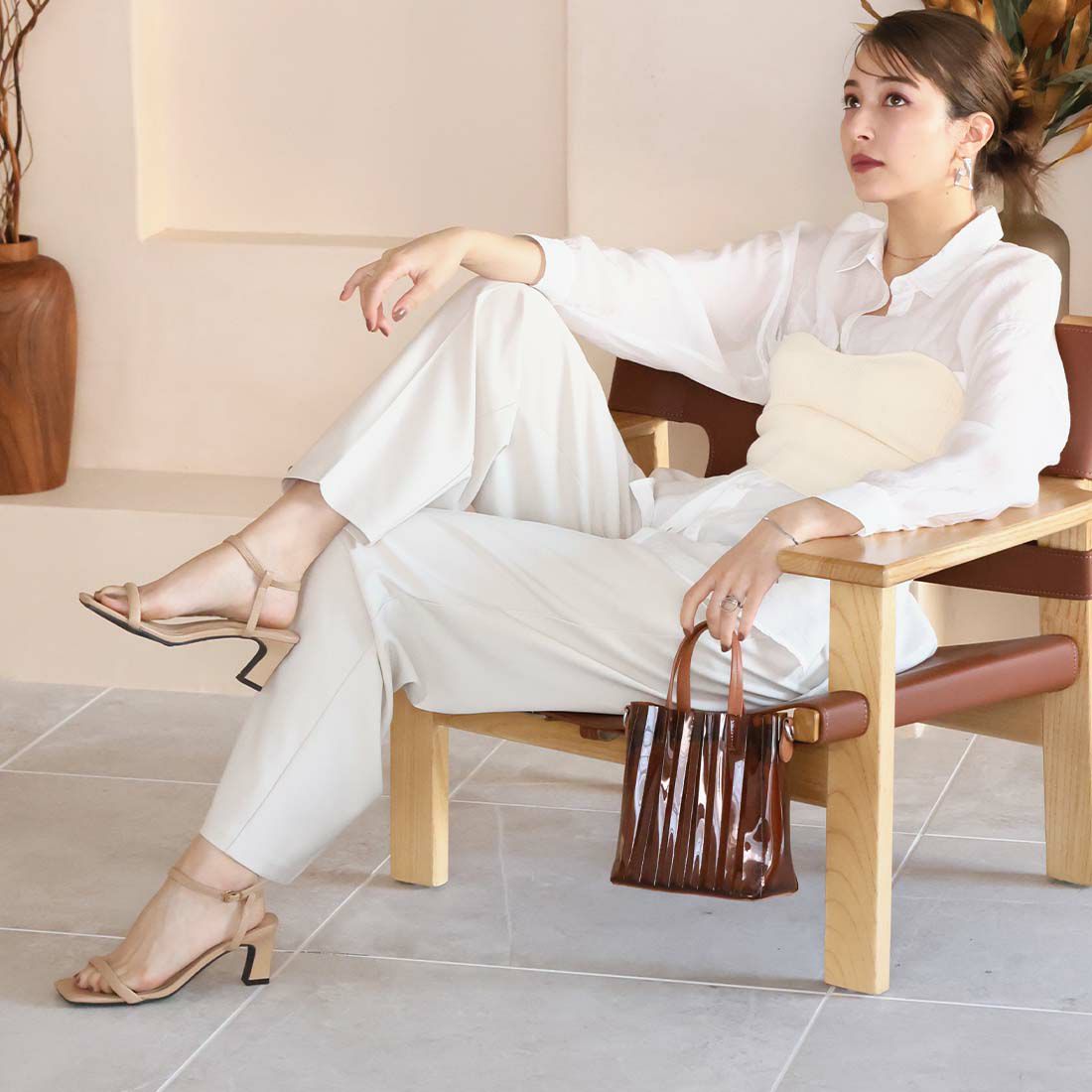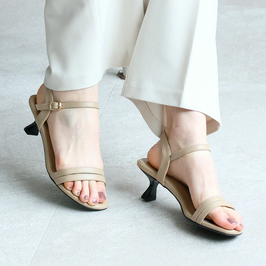 スクエアトゥ4cmヒールアンクルストラップサンダル