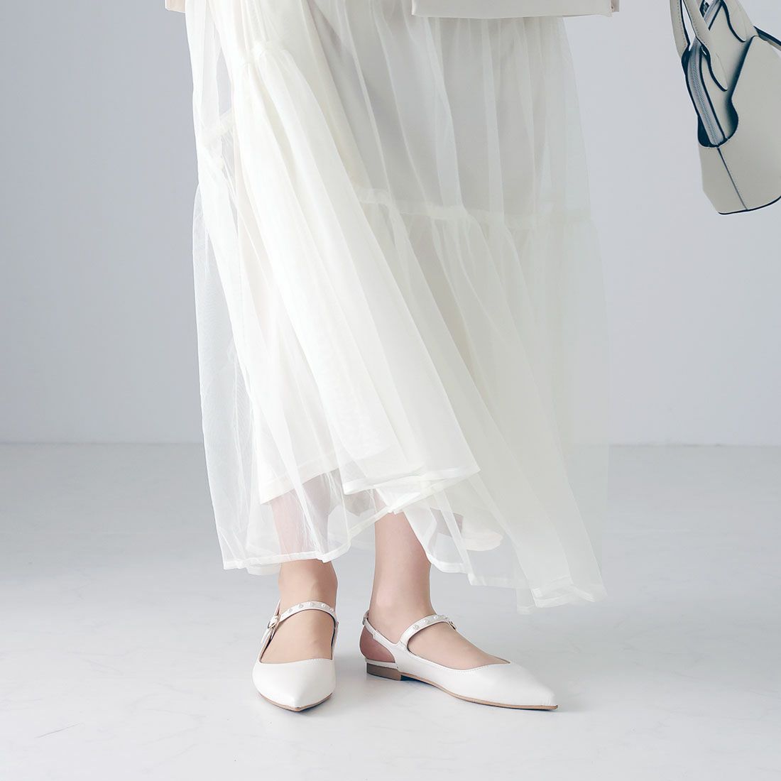 VIVIAN ポインテッドトゥパールストラップスリングバックパンプス