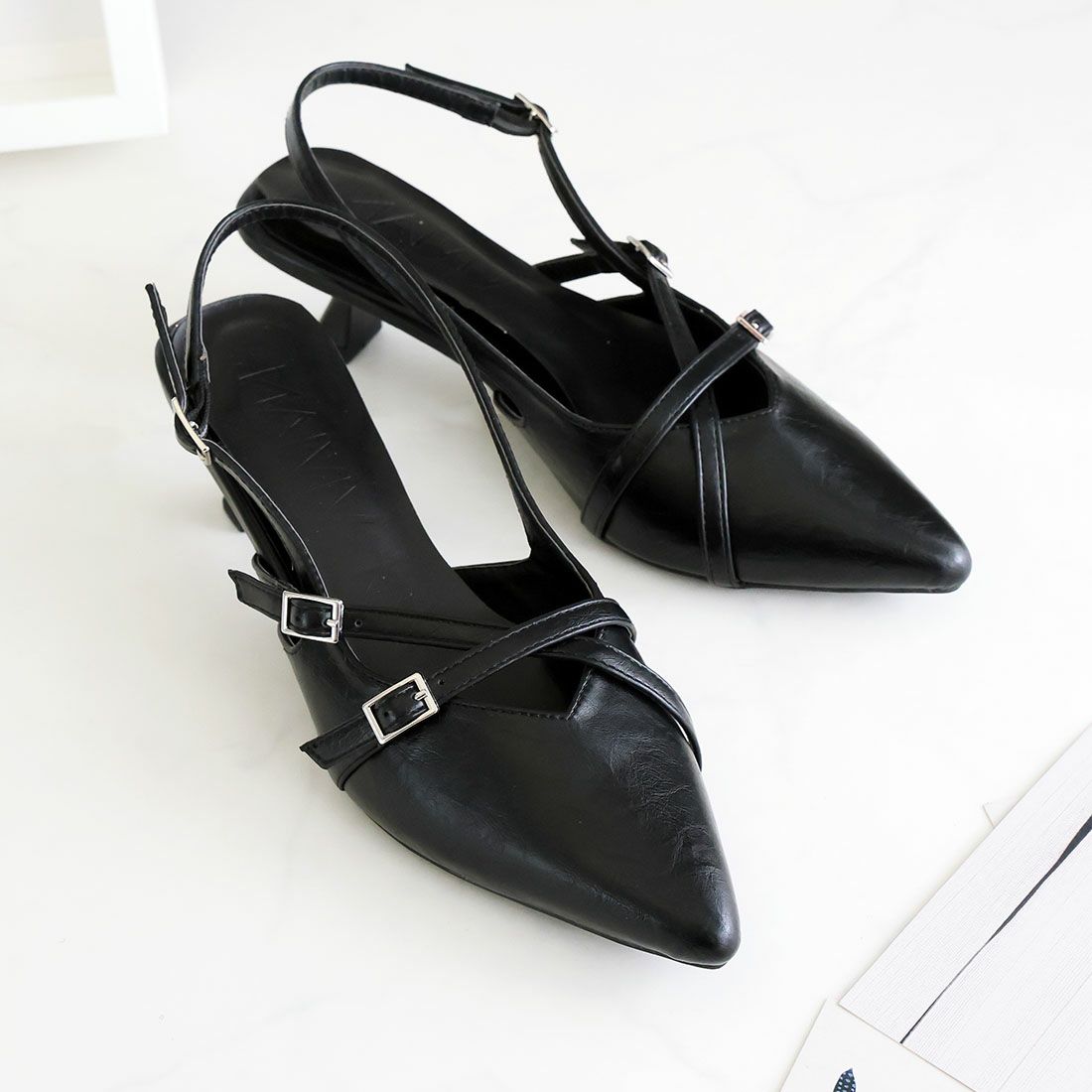 VIVIAN ポインテッドトゥクロスストラップスリングバックパンプス