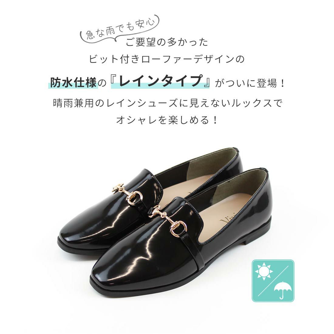 他の画像を見る VIVIAN 【晴雨兼用】スクエアトゥビット付きレインローファー 送料無料 即納 ポイント2倍 ¥ 3,480 税込 会員特別価格 ¥ 3,300 税込 カートに入れる お気に入りに登録する