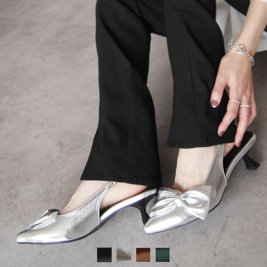 VIVIAN ポインテッドトゥビッグリボンスリングバックパンプス